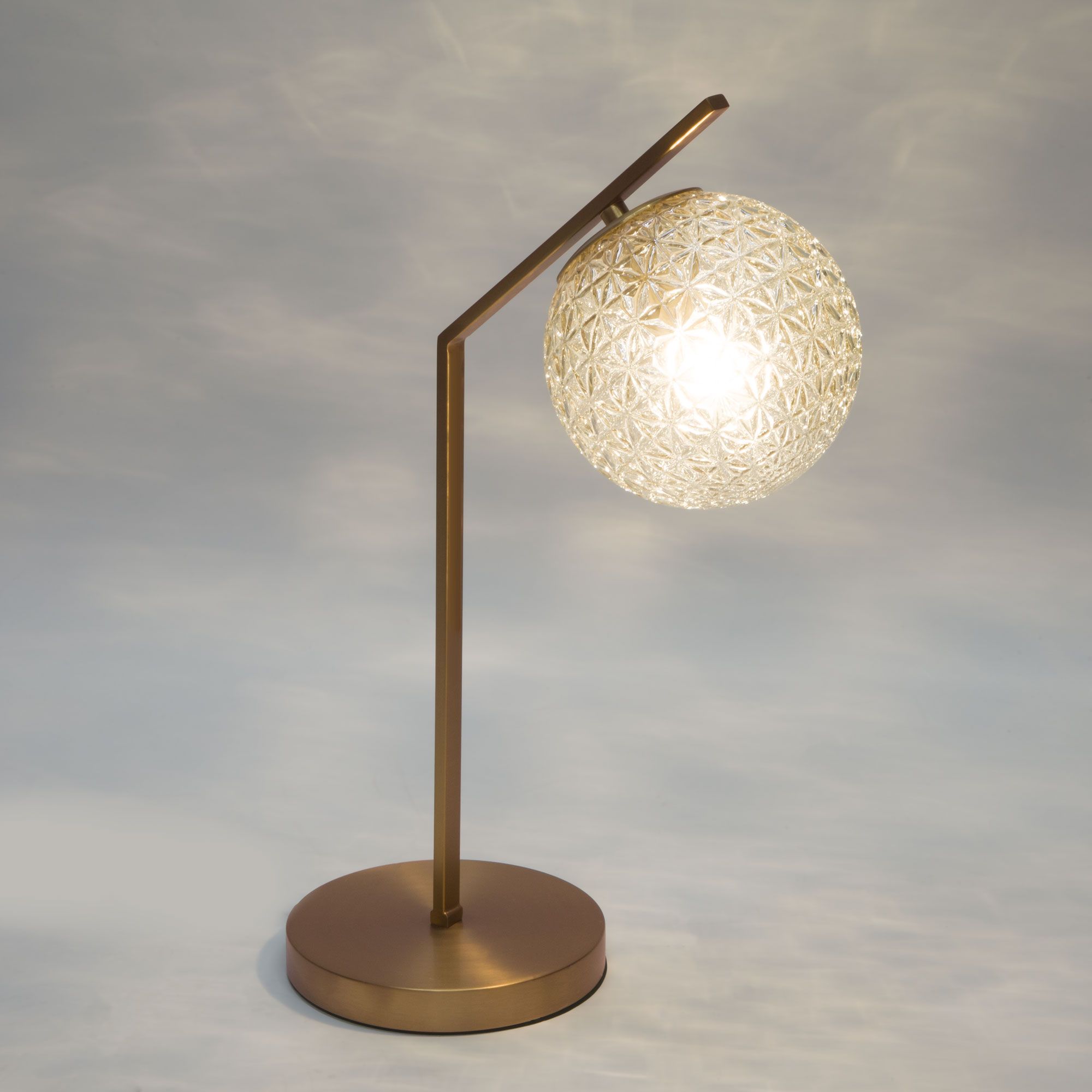 Благодаря фактурному стеклянному плафону настольная лампа создает мягкое равномерное свечение, подходящее для комфортного чтения книг в вечернее время. Прочный металлический корпус светильника устойчив к механическим воздействиям, а защитное покрытие обеспечивает надежную электроизоляцию и презентабельный внешний вид.