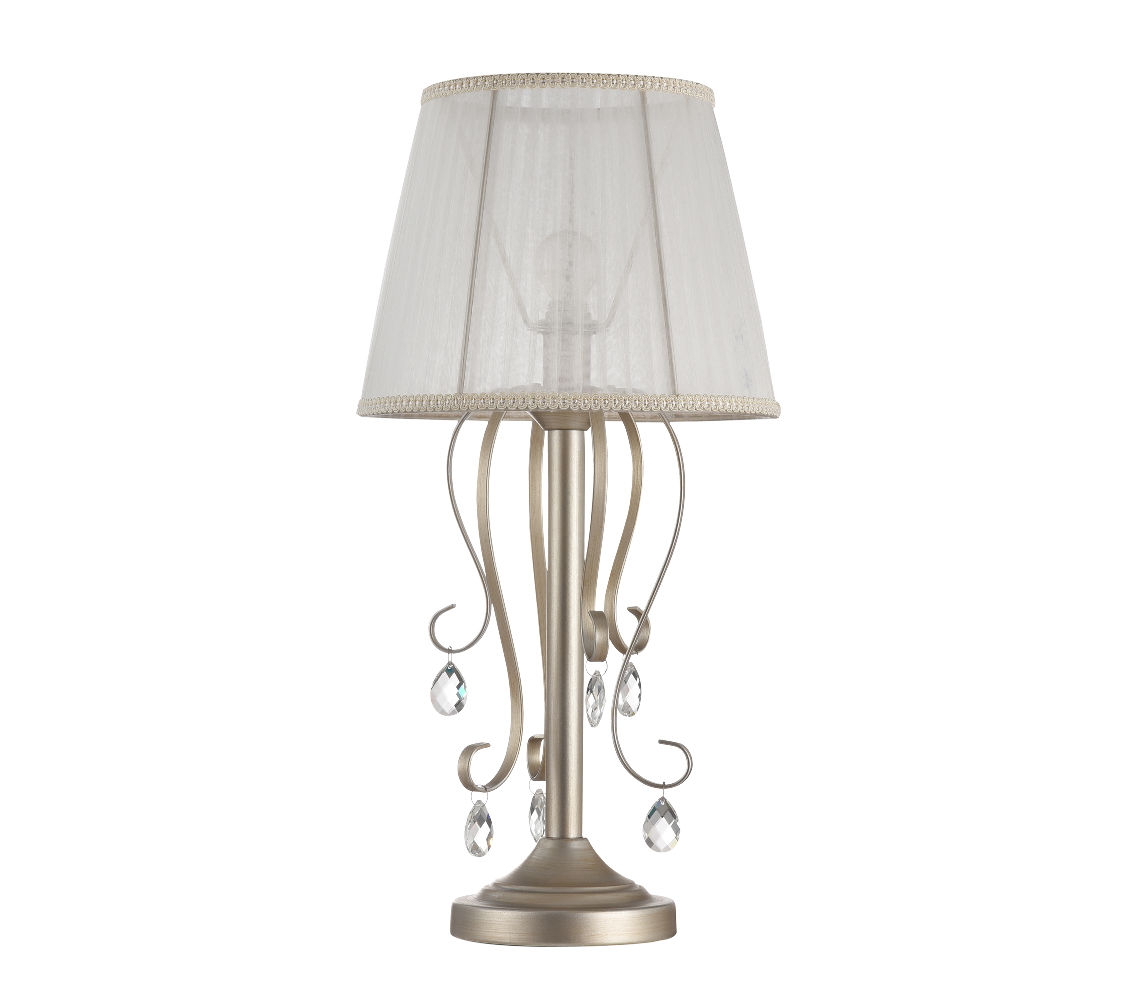 Абажуры и арматура светильников выполнены в разных цветах, с несколькими видами арматуры. Основание люстры украшено стеклянным декоративным элементом, а завитки рожков украшают подвески.