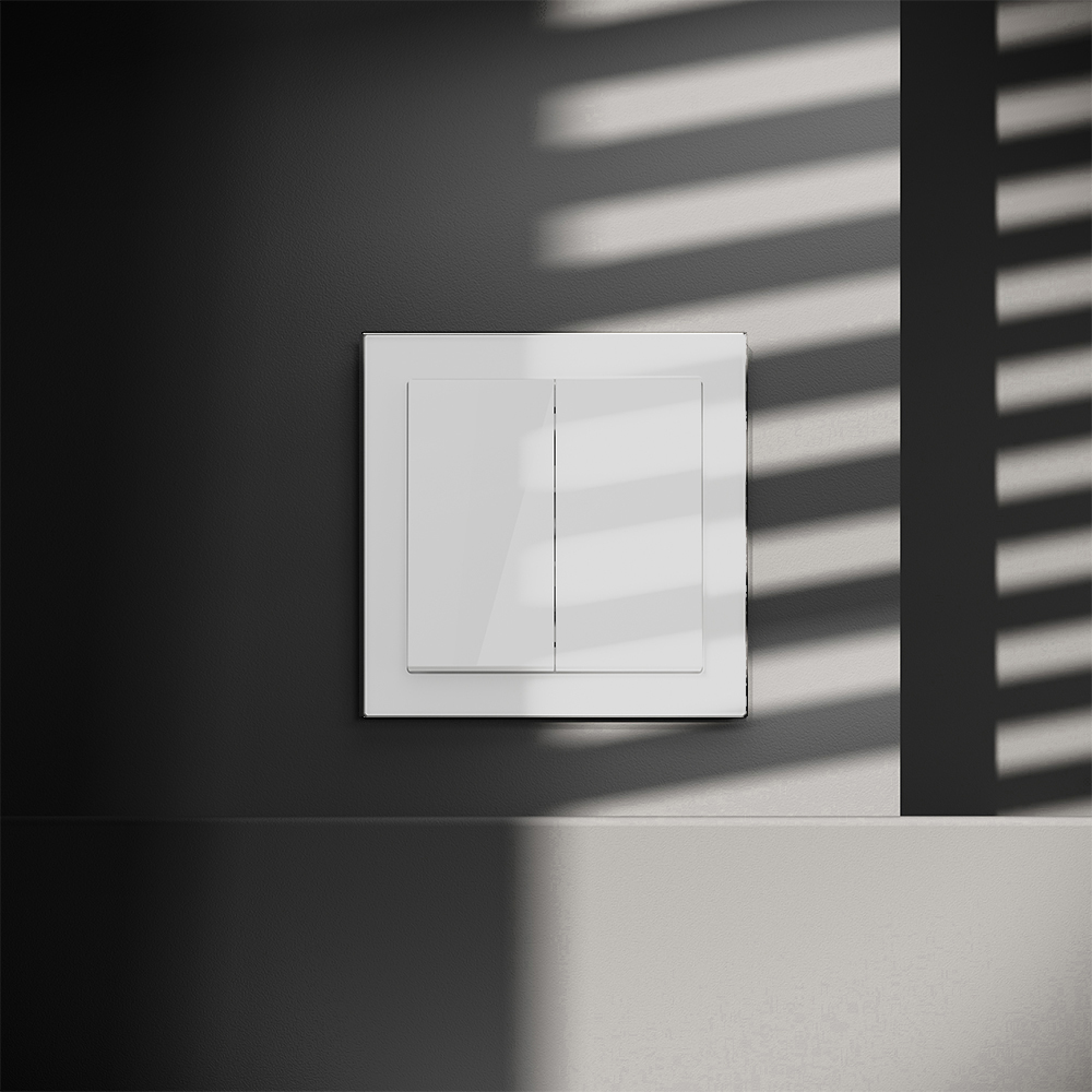 Перекрестный переключатель встраиваемый VOLTUM S70 двухклавишный 10А, (белый глянцевый)