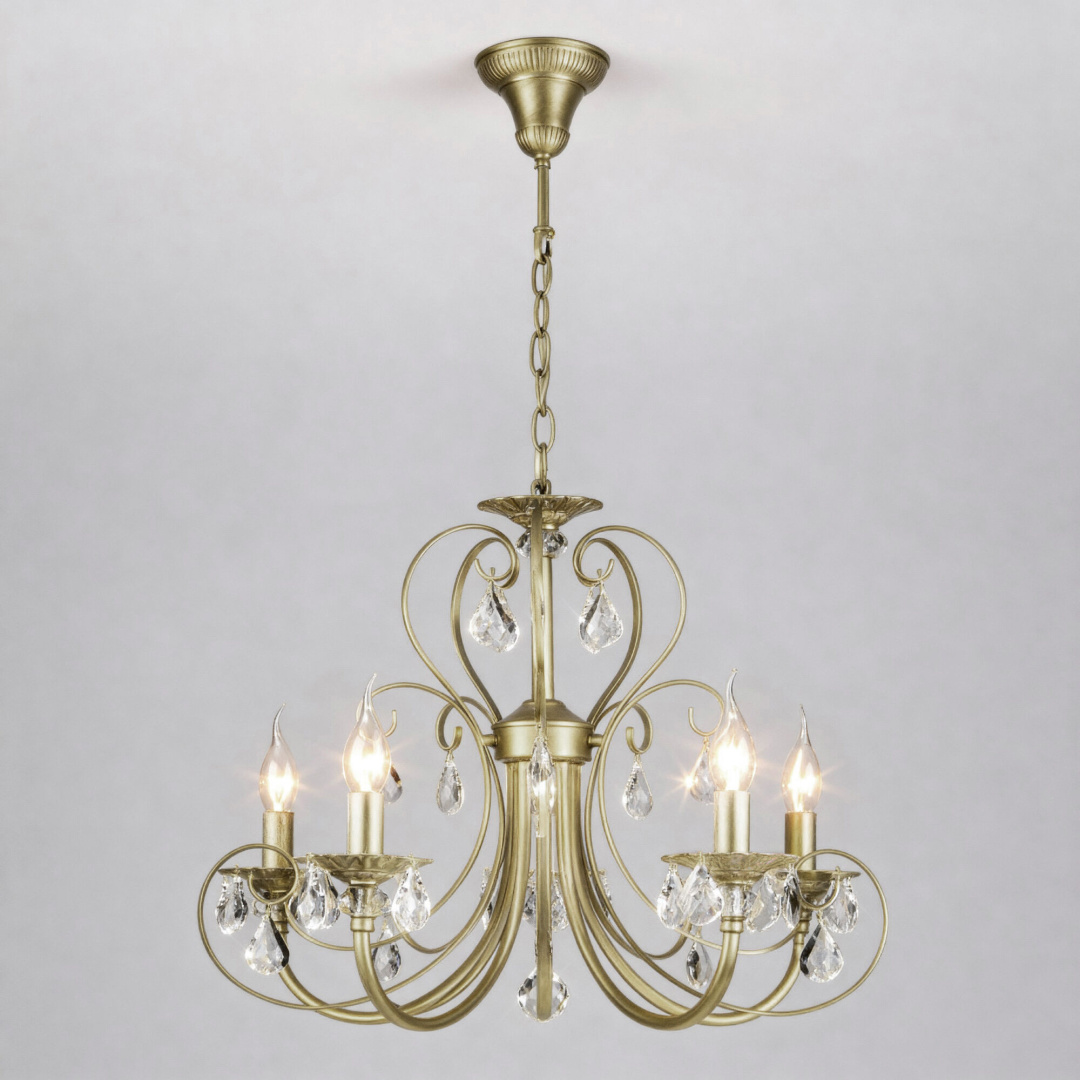 Мягкий свет подвесного светильника 3305/5 пробивается сквозь прозрачные грани хрусталя, отражается в латунной арматуре с витиеватыми вензелями и рисует на стенах волшебные узоры. Этот подвесной светильник не просто освещает — он создаёт атмосферу торжественности и уюта одновременно.