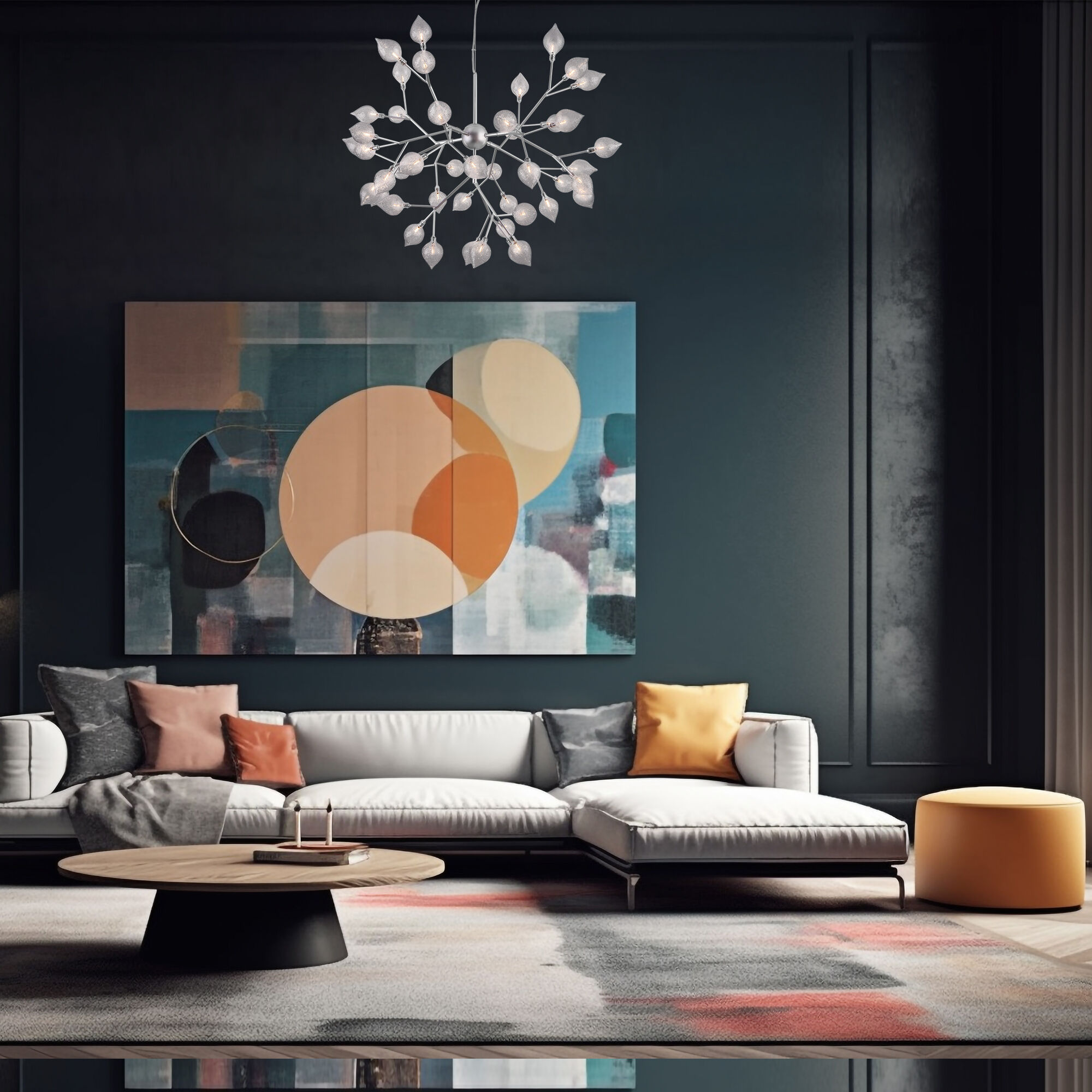 Дизайнерская люстра имеет 45 рожков и оснащена патронами с цоколем G4, которые рассчитаны на максимальную мощность ламп 3 Вт. Люстра украшена эффектными стеклянными плафонами в форме лепестков. Арматура изготовлена из высококачественного металла с надежным защитным покрытием.