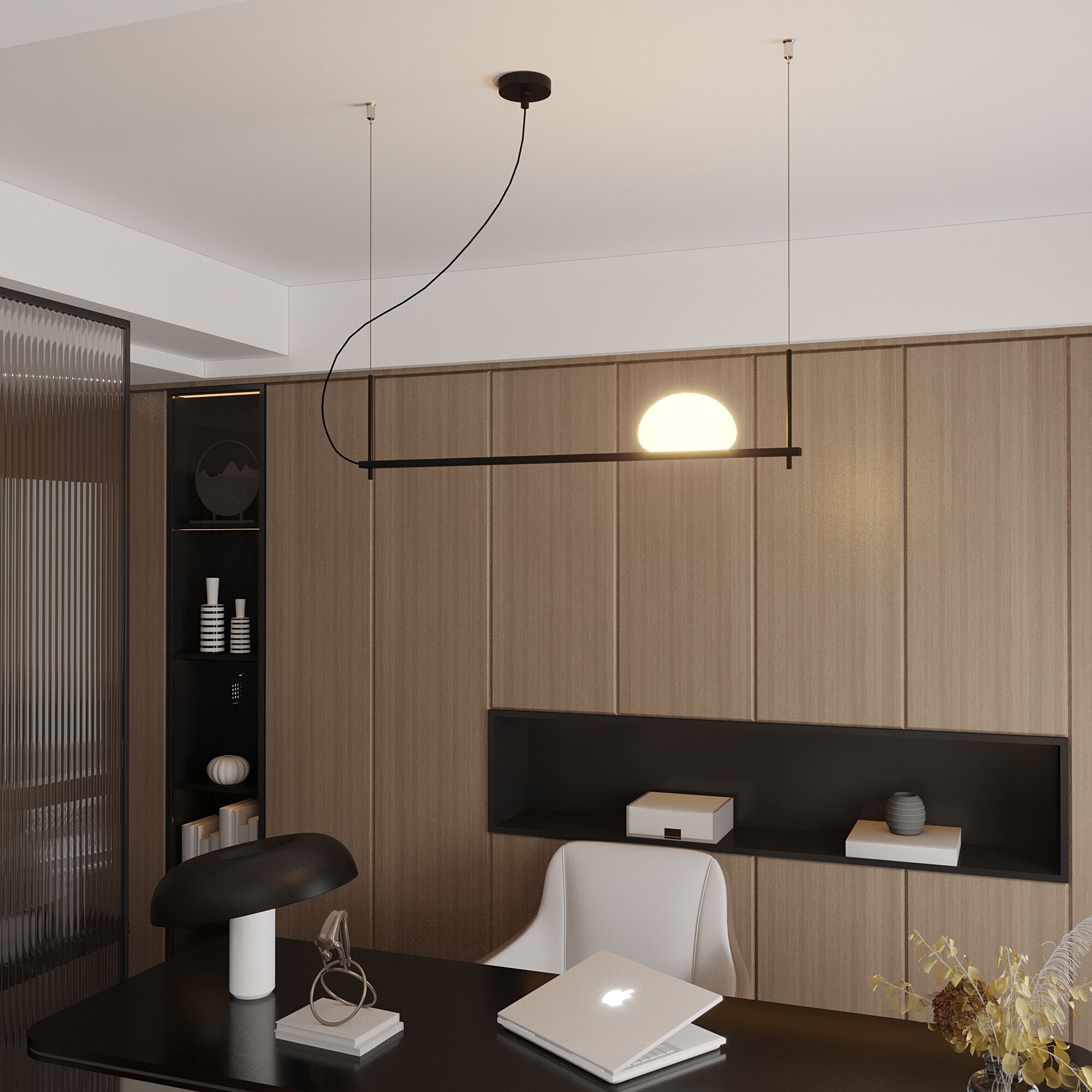 Светильник со стеклянным плафоном оборудован системой регулировки высоты подвеса, позволяющей размещать изделие на разных уровнях, уменьшая или увеличивая угол рассеивания светового потока. Подвесной светильник просто устанавливается на натяжных потолках при помощи монтажной планки.