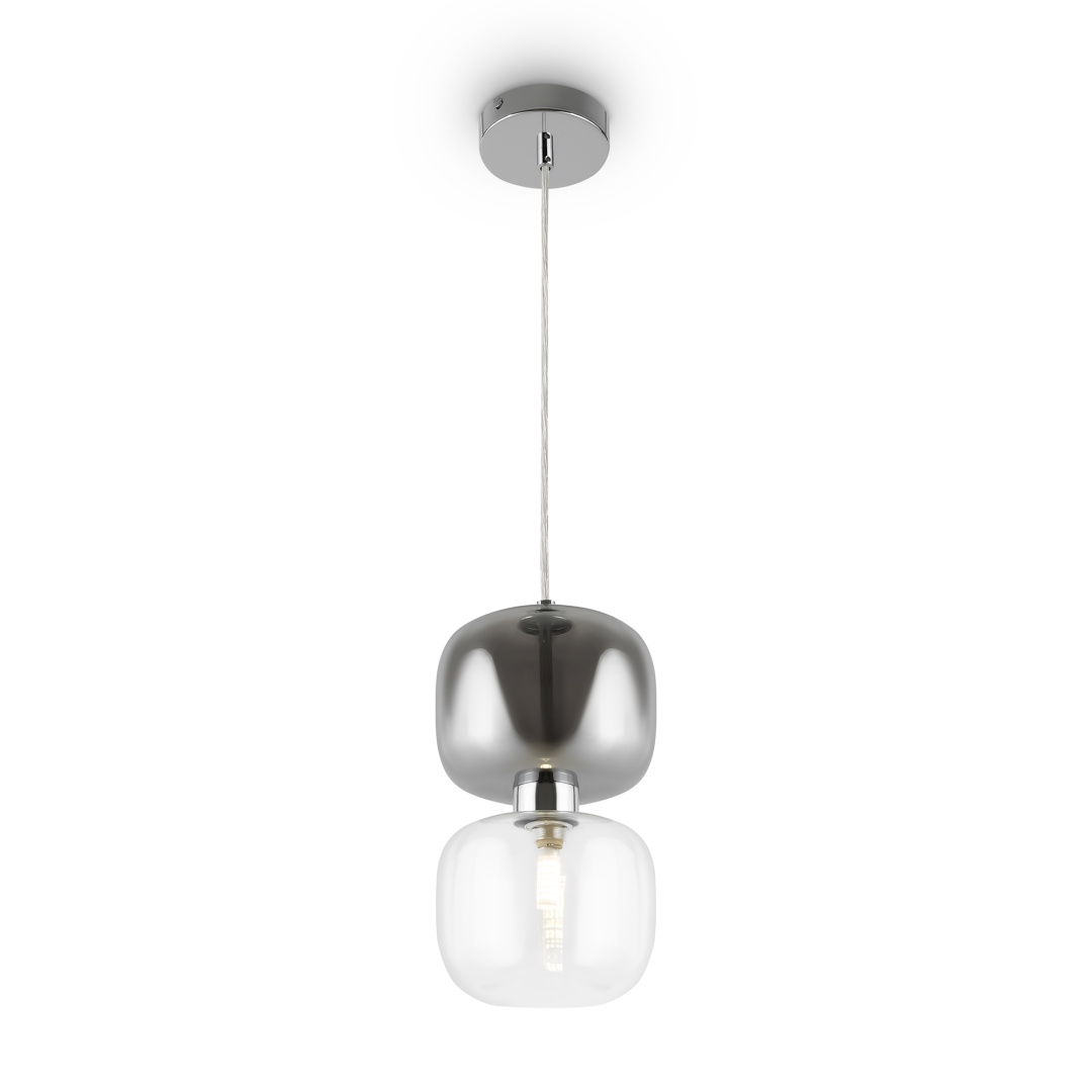 Металлическая арматура в двух оттенках: латунь, хром. Стеклянный плафон оригинальной формы. Верхняя часть плафона гальванизирована в тон арматуре, нижняя – прозрачная. Источник света – лампа G9.