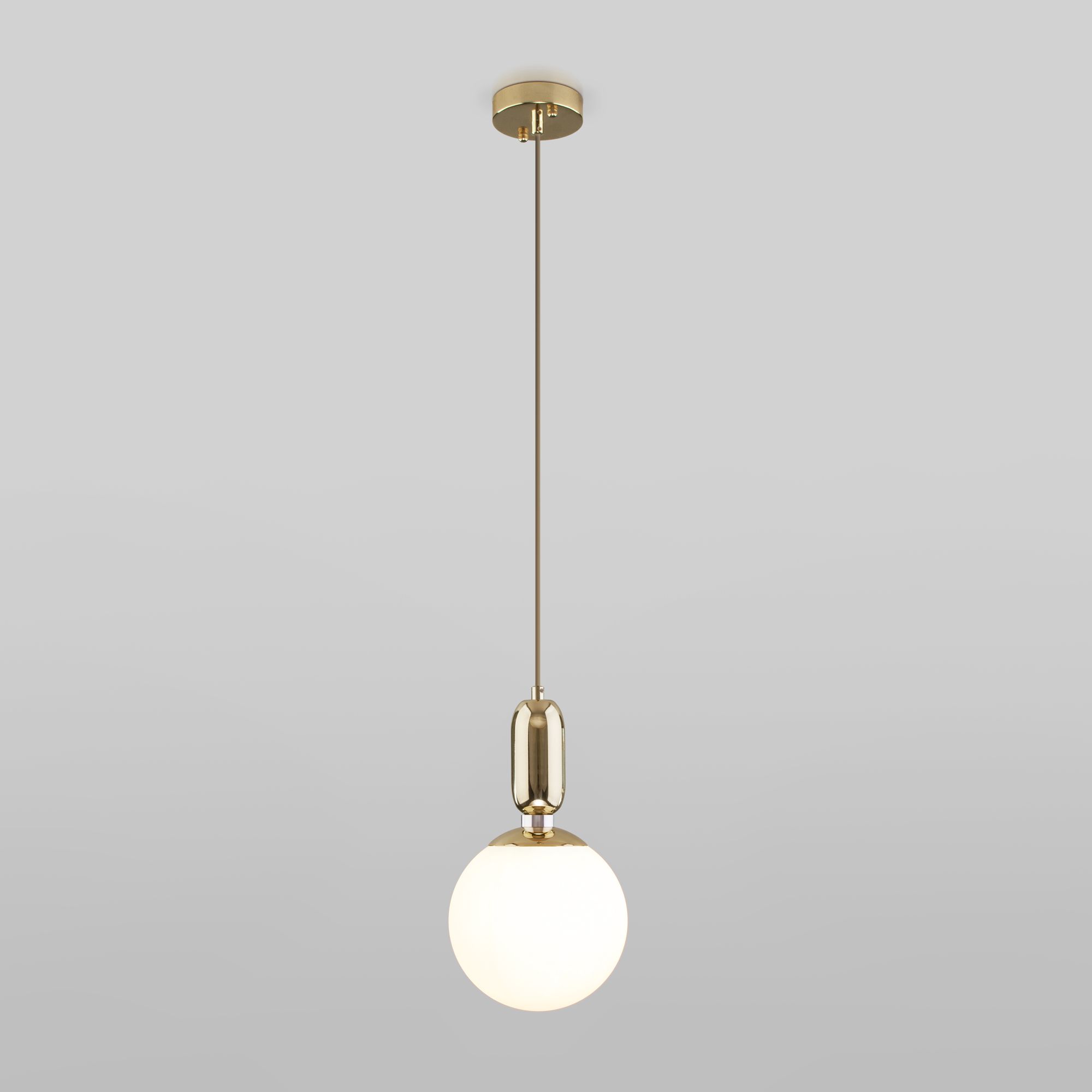 Подвесной светильник со стеклянным плафоном 50197/1 в золотом цвете предназначен для создания дополнительного освещения и акцентной подсветки в современных интерьерах. Светильник со сменной лампой E27 создаст качественное освещение на площади 4 кв.м. и подсветит рабочие зоны на кухне, в гостиной, в офисе и других местах.
