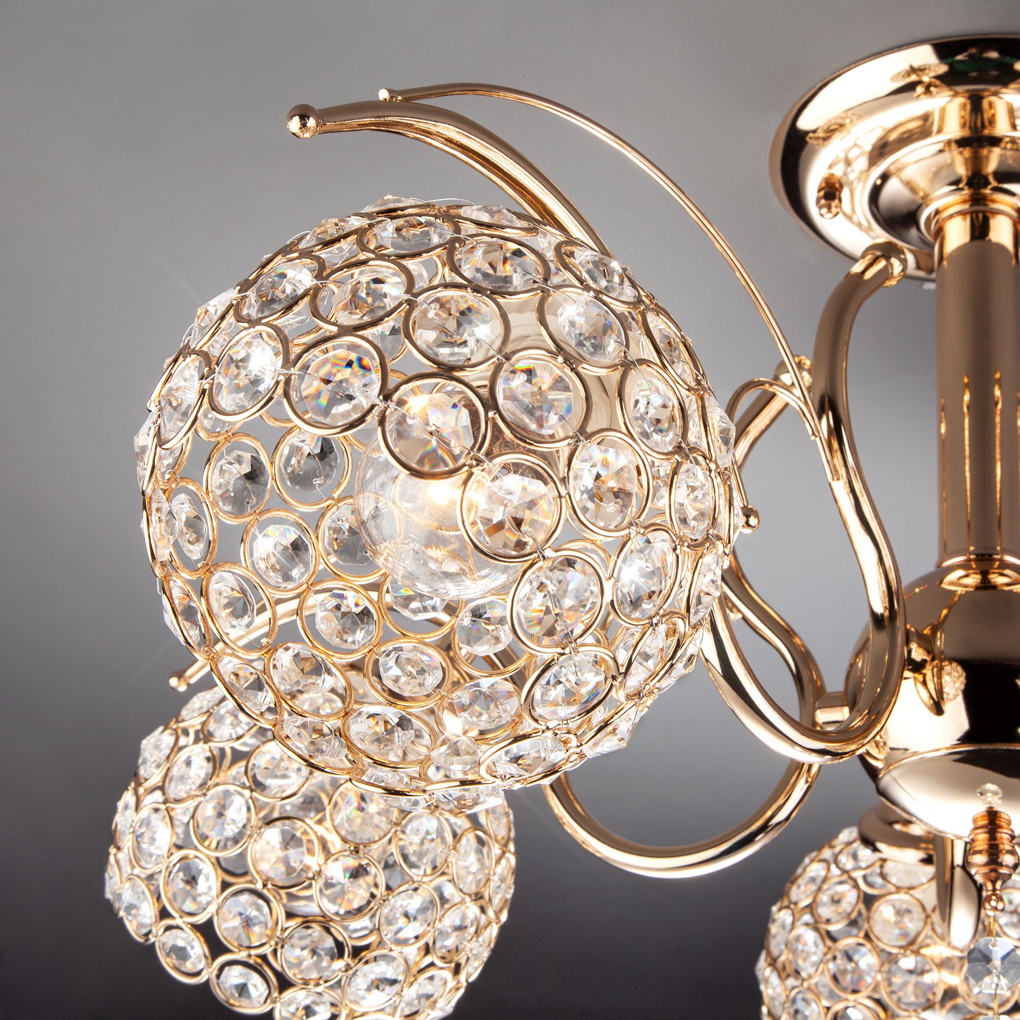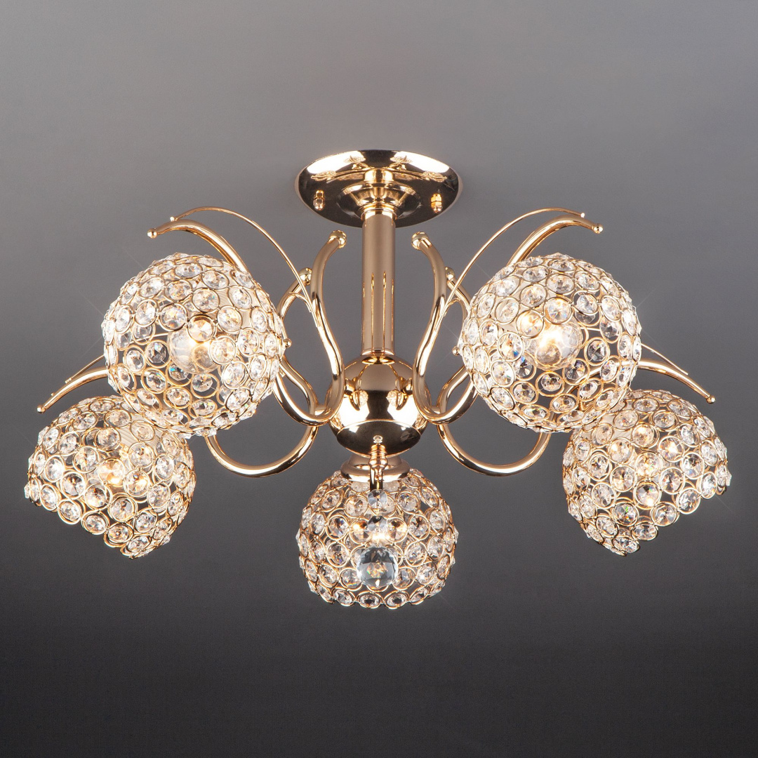 Потолочная люстра с плафонами 7777/5 золото предназначена для создания основного освещения в современных и классических интерьерах, подходит для различных типов помещений и рассчитана на площадь освещения 16 м².