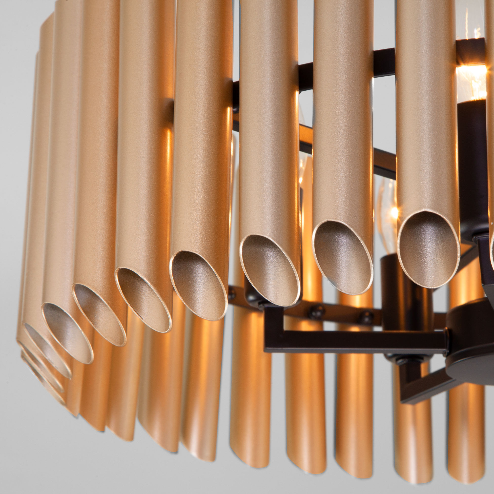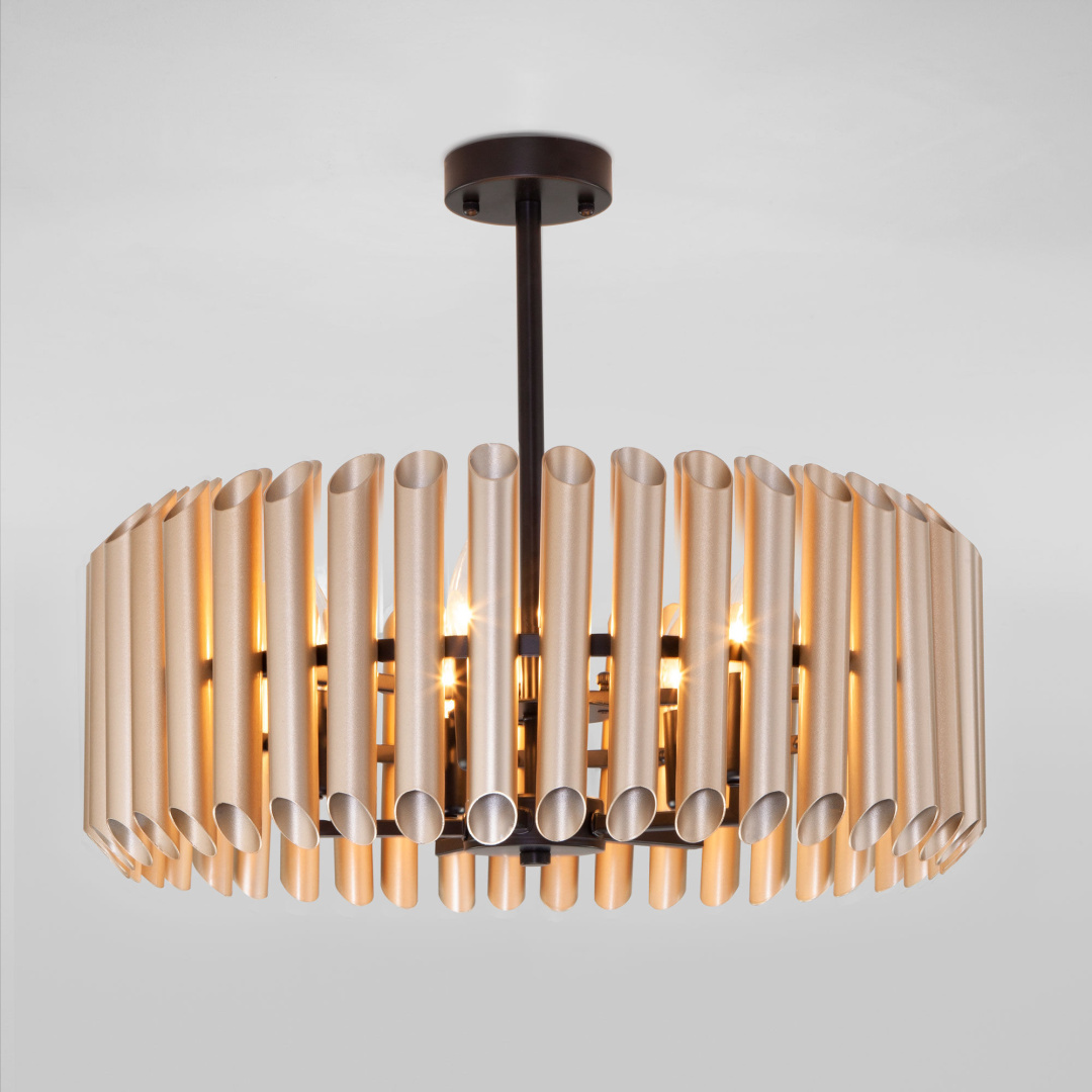 Организовать качественное освещение вам поможет эффектная потолочная люстра в цвете латунь/черный. Простые эргономичные формы и умеренные тона станут прекрасным дополнением для вашего помещения.
