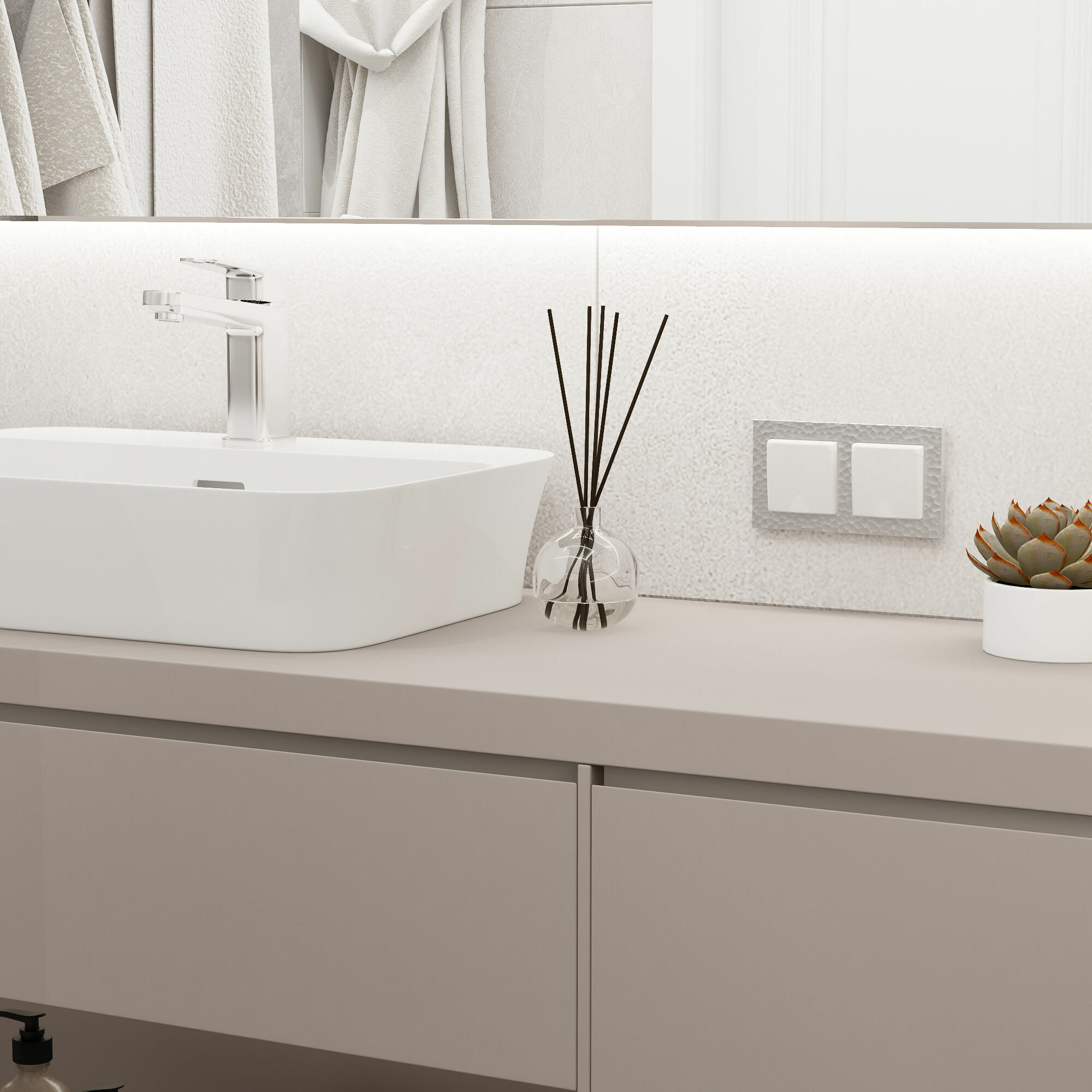 Механизмы с матовыми накладками комбинируются с любыми рамками Werkel. Совместимость дает большой простор в создании множества уникальных сочетаний.