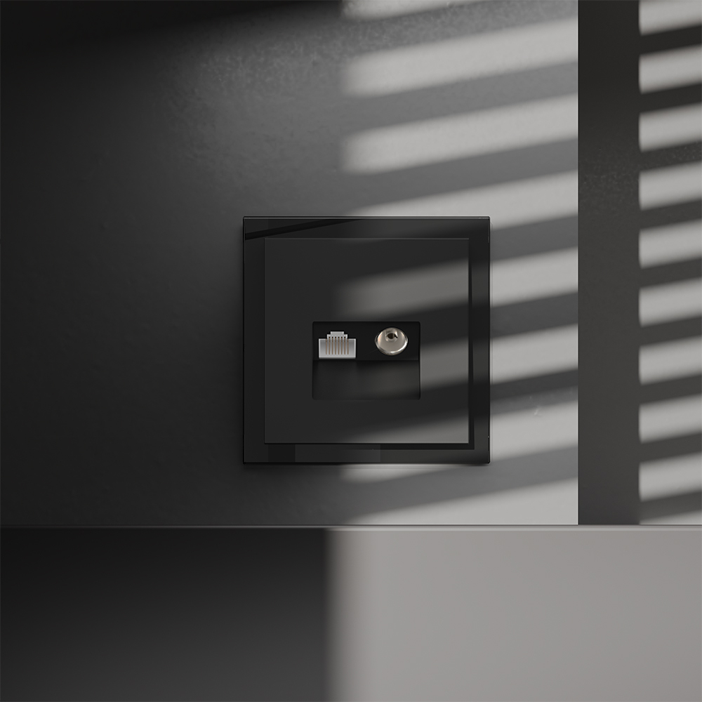 Розетка телевизионная встраиваемая VOLTUM S70 TV+RJ45 кат. 6, (черный матовый)