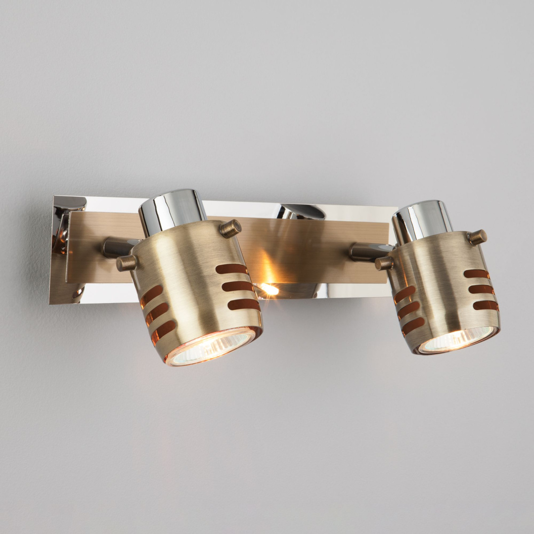 Спот с поворотными плафонами 23463/2 хром / античная бронза создаст качественное дополнительное освещение и станет ярким дополнением к основному источнику света. Благодаря поворотным металлическим плафонам можно направлять световой поток в нужном направлении. В качестве источника света используются сменные лампы с цоколем G5.3. Патрон рассчитан на максимальную мощность ламп накаливания 50 Вт.