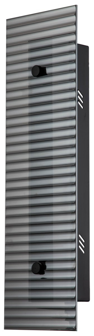 Светильник настенный коллекции Lucen выполнен из металла, окрашенного в черный цвет, и рифленый плафон из стекла прямоугольной формы дымчатого цвета. Светильник комплектуется пультом дистанционного управления 2,4G и драйвером высокого качества с европейским стандартом T?V. Пульт дистанционного управления обеспечивает переключение трех режимов световой температуры и диммирование.