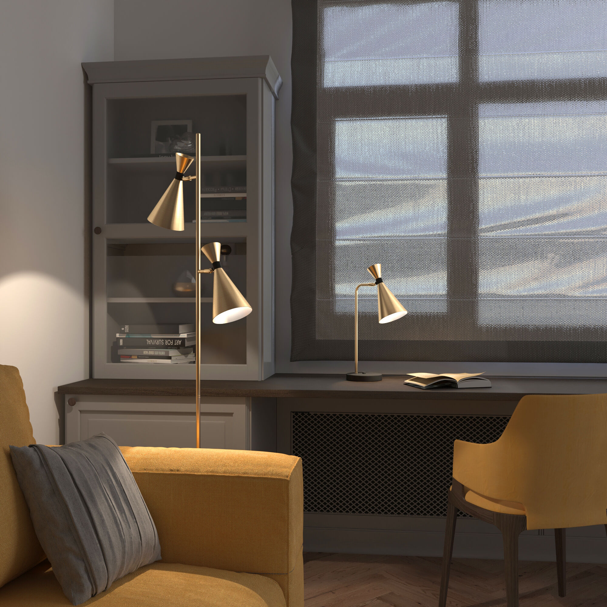 Благодаря металлическим плафонам напольный светильник создает мягкое рассеянное свечение, подходящее для комфортного чтения книг в вечернее время. Прочный металлический корпус светильника устойчив к механическим воздействиям, а защитное покрытие обеспечивает надежную электроизоляцию и презентабельный внешний вид.