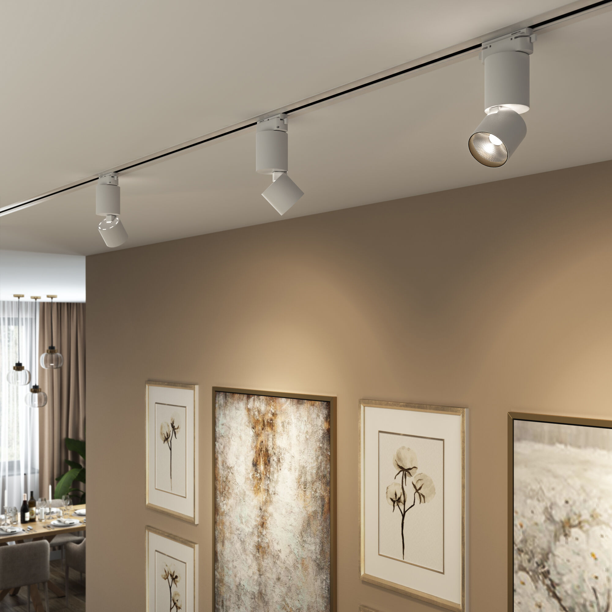 Однофазный трековый светодиодный светильник коллекции Sens в белом цвете- это сочетание трендовой геометрии и минималистичного дизайна. Модель обладает поворотным механизмом, с помощью которого можно создавать выразительные световые композиции в помещении. Встроенный COB-светодиод мощностью 10 Вт образует яркий световой луч. Угол рассеивания светового потока светильников составляет 17°, что делает их отличным решением для создания акцентного освещения в современном интерьере зала, гостиной, кухни или кабинета.