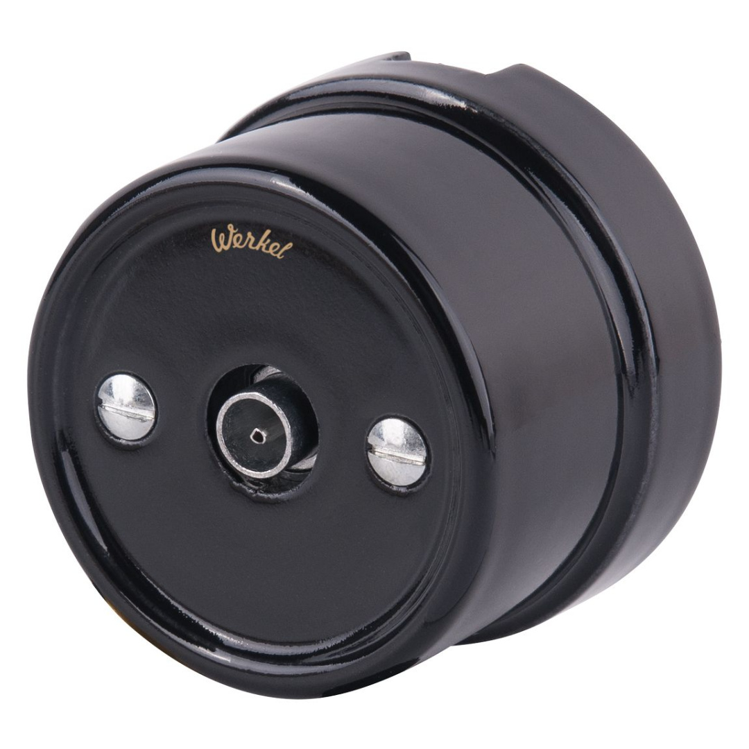 ТВ розетка (черный) Ретро W5683008 используется для подключения к телевизионной сети и передачи сигнала в исполнительное устройство, воспроизводящее видео изображение.