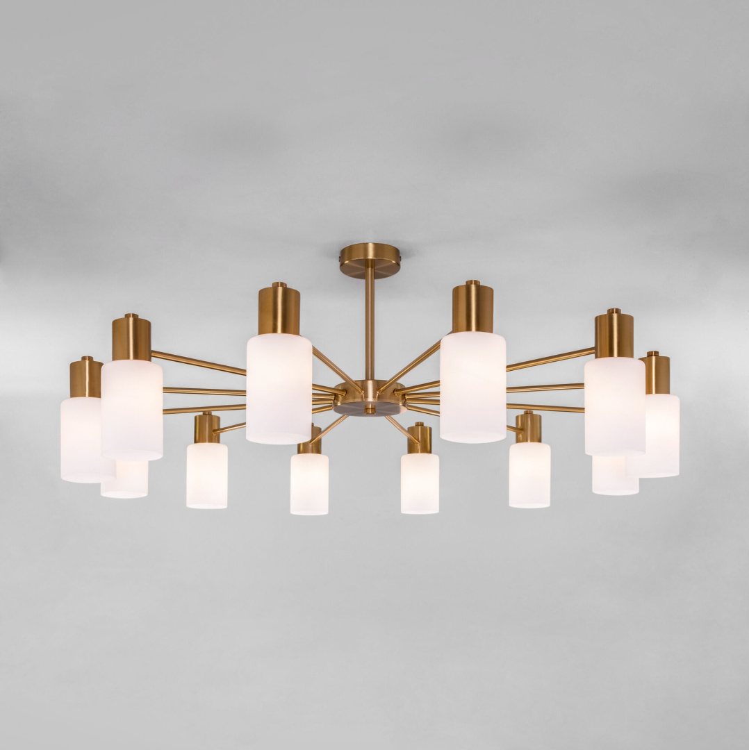 Потолочная люстра со стеклянными плафонами 70160/12 латунь предназначена для создания основного освещения в современных и классических интерьерах, подходит для различных типов помещений и рассчитана на площадь освещения 21 м².