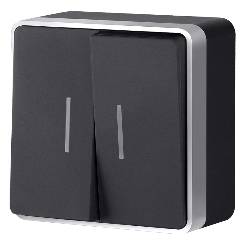 Минималистичный накладной двухклавишный выключатель с подсветкой 10 А 250 В, 50 Гц W5020134 в цвете черный с серебром является ключевым элементом любой домашней электросети, служащим для управления света. Выключатель представляет собой механизм нажимного типа.