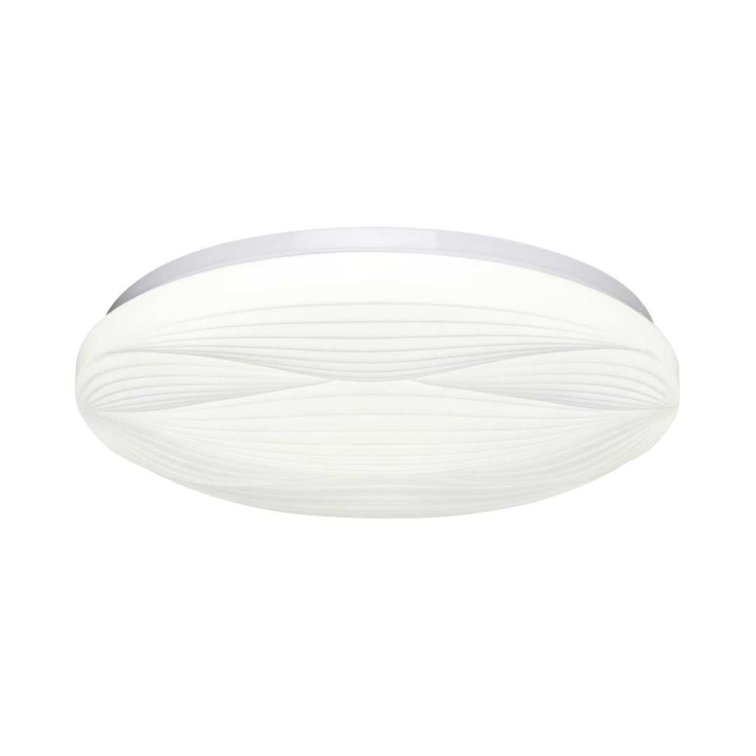 Светильник 7686/DLN линии HIMAR состоит из металлического основания (базы) и пластикового рассеивателя. Материал рассеивателя — высококачественный пластик марки PMMA 2.0 белого цвета с матовой поверхностью. Пластик обеспечивает светильнику равномерное рассеивание и хорошее светопропускание. Форма плафона: круглая, декорирована рельефом из пластика в виде узора белого цвета. Степень защиты IP43 позволяет использовать светильник в определенных зонах влажных помещений. В комплект входит LED-модуль с линзами мощностью 48 Вт, соответствующей лампе накаливания 515 Вт, а также переключатель температуры цвета (ССT) на драйвере, с помощью которого осуществляется изменение цветовой температуры 3000/4000/6000 К и переход светильника в режим теплого/белого/холодного света. Для установки необходимого режима рекомендуется использовать удлиненный тонкий предмет типа небольшой отвертки.