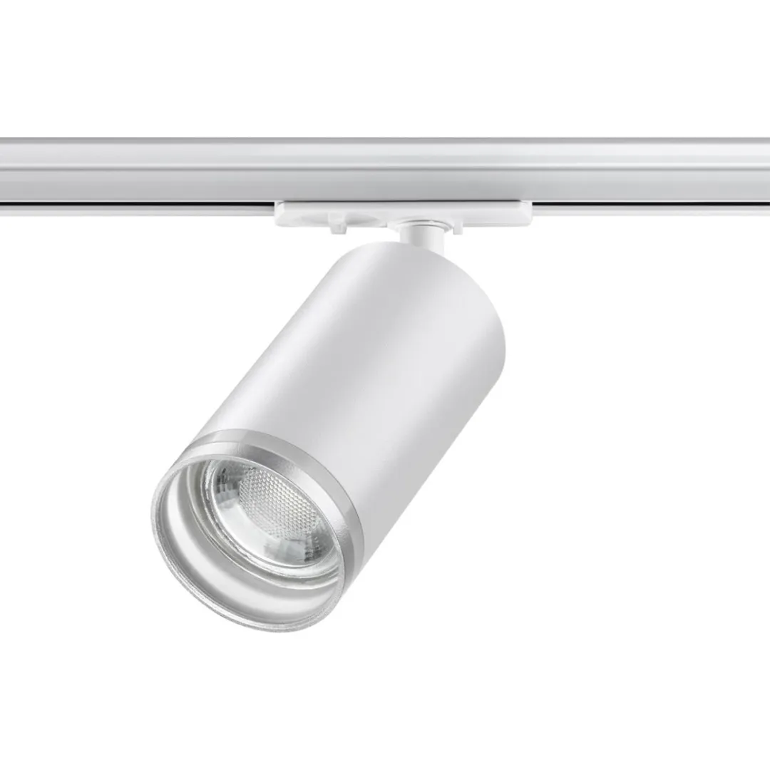 Светильник трековый для однофазного двухжильного (универсального) шинопровода. В корпусе светильника есть акриловые части, поэтому его используют только с LED лампой max.9Вт.