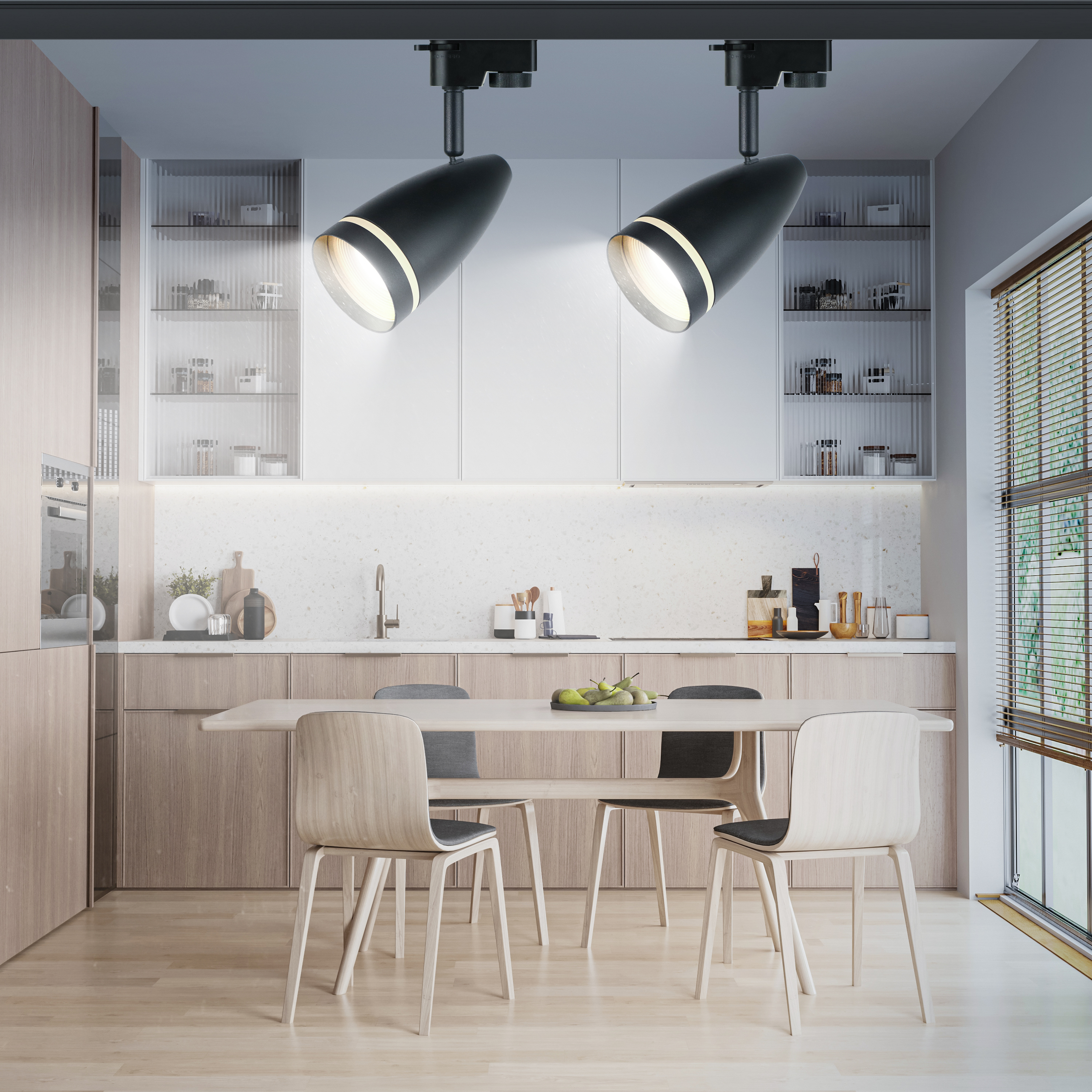 Однофазный трековый светильник под лампу с цоколем GU10. Светильник выполнен из алюминия и пластика. На передней части плафона, выполненного в виде конуса, расположено декоративное акриловое кольцо, которое наполняется светом и придает светильнику превосходный внешний вид.