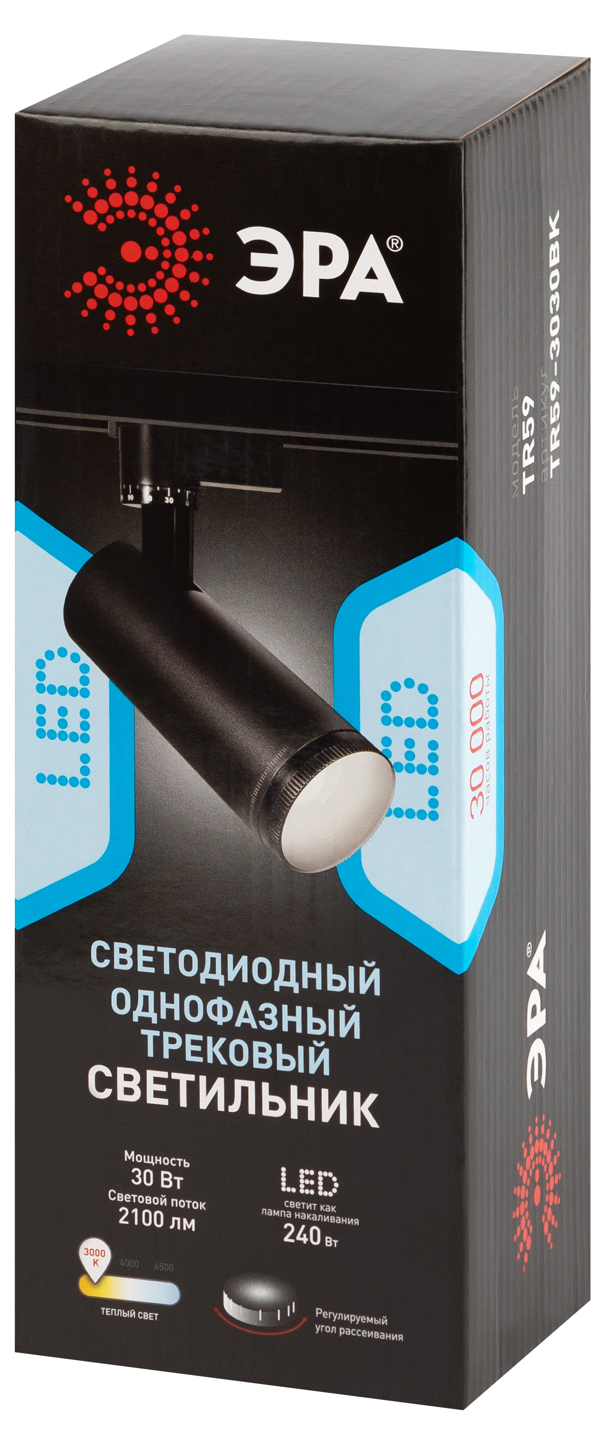 Трековый светильник однофазный эра tr59 - 3030 bk б0054447