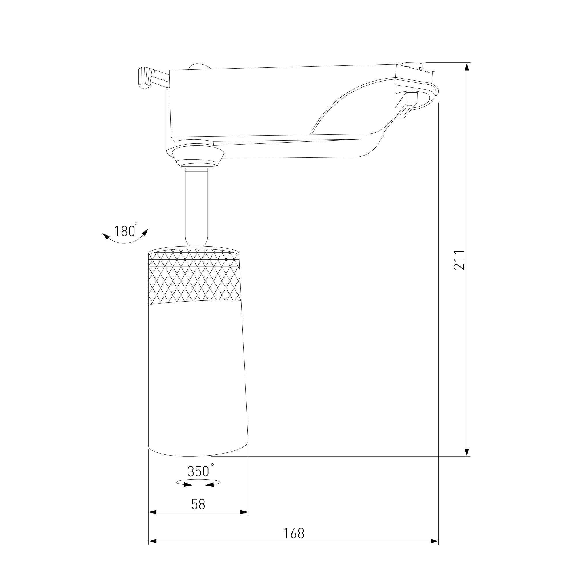 Конструкция светильника может менять угол наклона плафона на 355° по горизонтали и на 45° по вертикали, что позволяет создавать уникальные световые композиции.