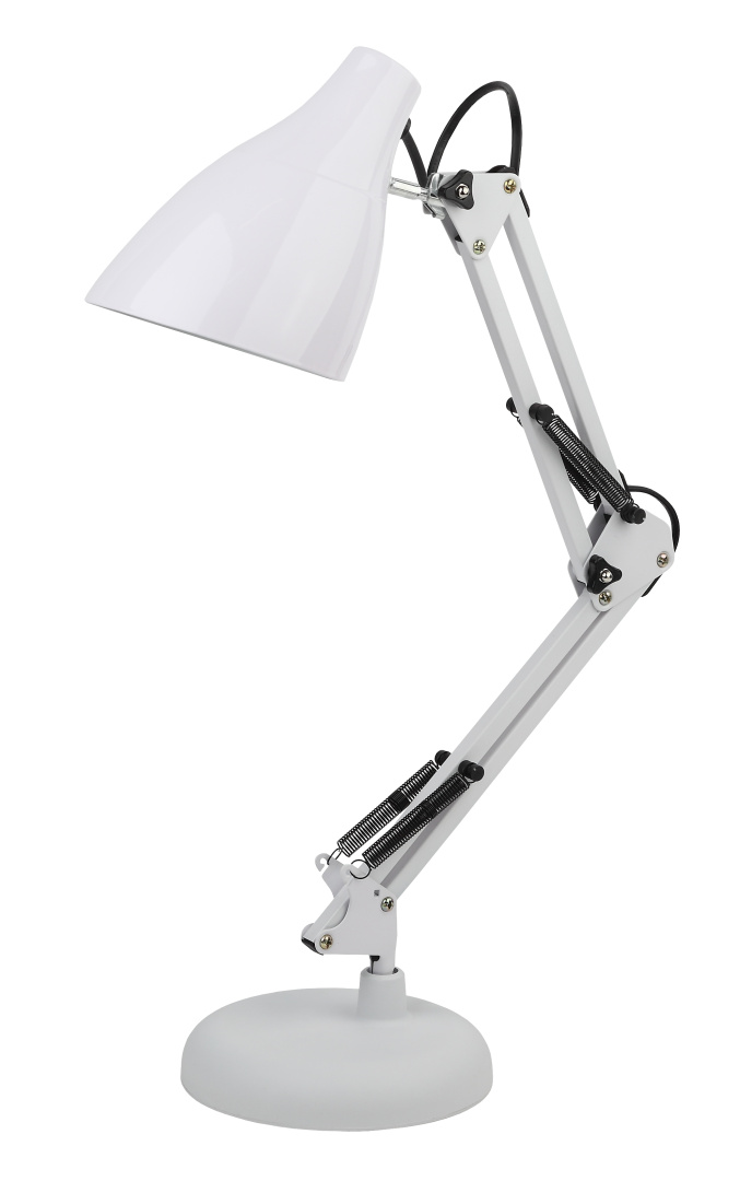 Настольный светильник ЭРА N-123-Е27-40W-W трендового дизайна с классической конструкцией может использоваться с разными источниками света - лампой накаливания, компактной люминесцентной лампой (КЛЛ) или светодиодной (LED) лампой. Выключатель на проводе. Устойчивое основание. Высота плафона регулируется двухсекционной сгибающейся стойкой, направление света - поворотом и наклоном плафона в любом направлении.