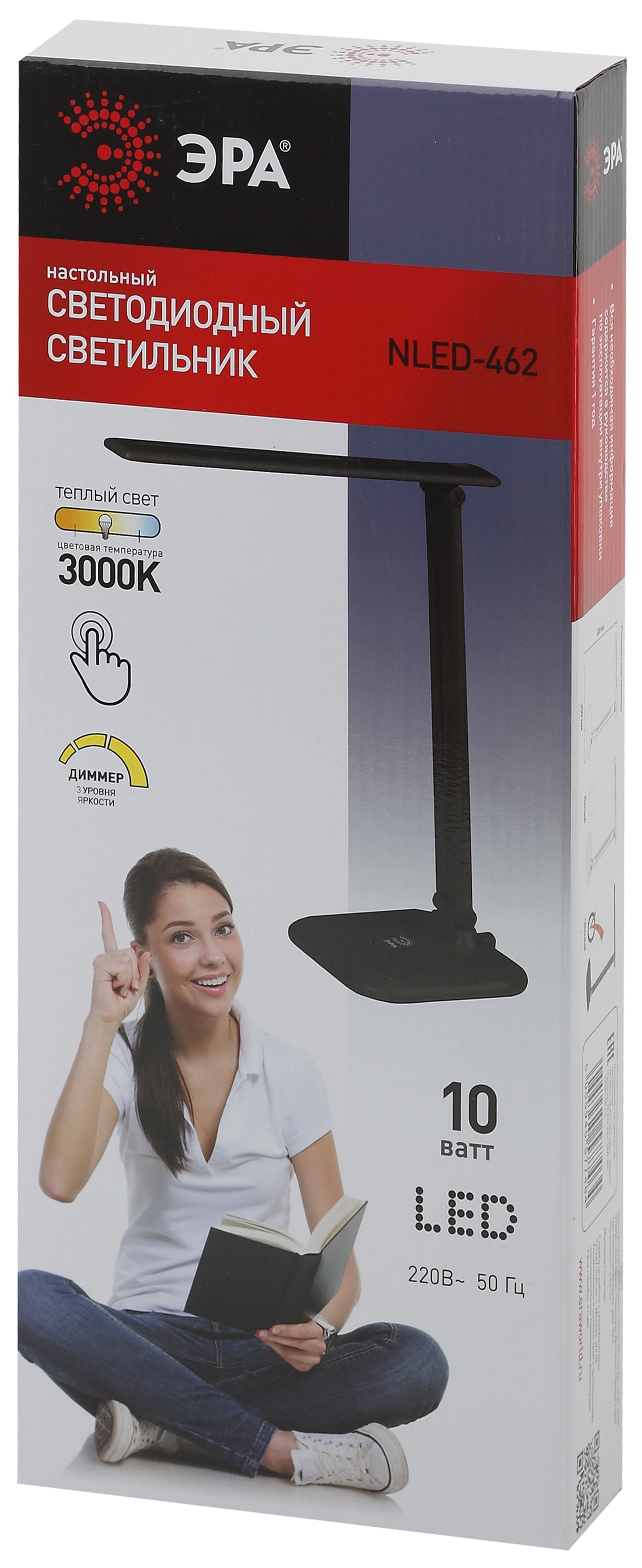 Настольный светильник ЭРА NLED-462-10W-BK со светодиодами (LED) в качестве источников света. Оснащен сенсорным управлением, есть регулировка яркости освещения - 3 уровня. Складная конструкция для оптимального хранения.
