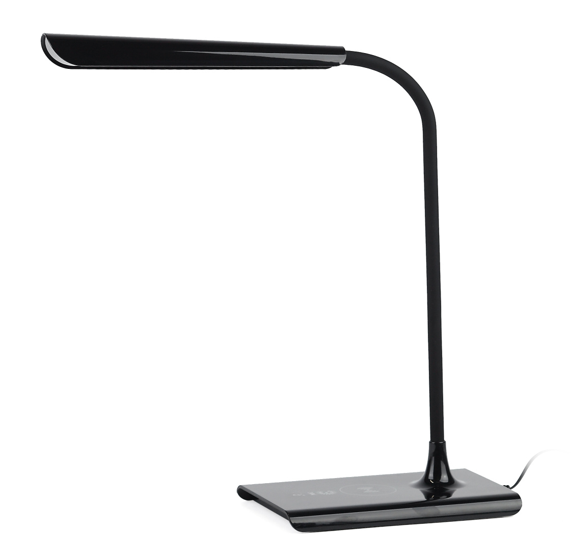 Настольный светильник ЭРА NLED-474-10W-BK позволяет не только с комфортом читать или работать за столом, но и заряжать мобильные устройства от встроенного порта USB или беспроводным способом. Даже если такая функция не встроена в сам гаджет, в комплекте поставки 2 модуля, подключаемых к телефону для обеспечения функции беспроводной зарядки: с разъемом для iPhone (Lightning) и Android (микро-USB). Встроенный USB порт при желании позволяет заряжать, например, планшет или второй телефон одновременно с беспроводной зарядкой, это очень удобно. Управление светильником осуществляется при помощи сенсорных кнопок на основании, есть возможность плавной регулировки яркости. Корпус светильника глянцевый, а гибкая стойка покрыта приятным на ощупь материалом софт-тач.