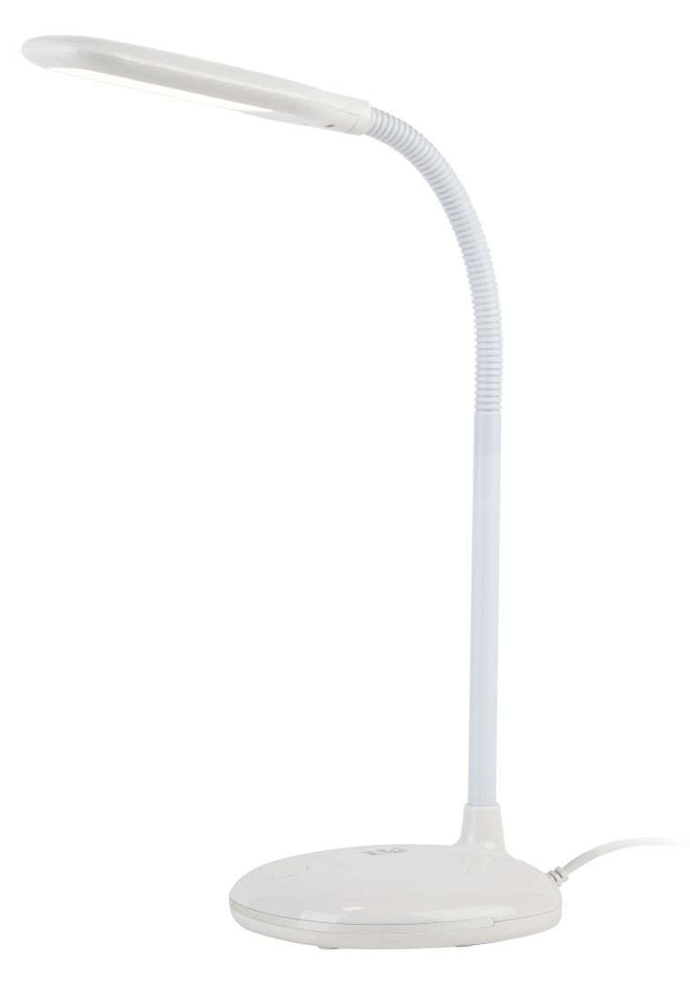 Настольный светильник ЭРА NLED-477-8W-W со светодиодами (LED) в качестве источников света. У светильника выключатель на основании. Это базовая модель с оптимальным универсальным дизайном хорошей для работы за столом высоты (40 см). Гибкая стойка позволяет выбирать наиболее комфортное направление света.