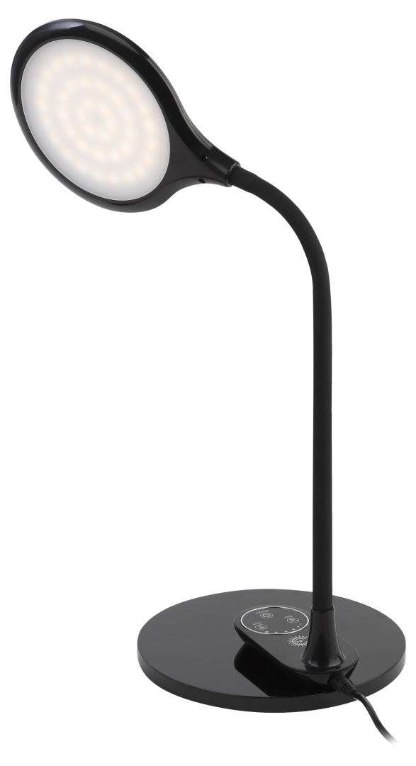 Настольный светильник ЭРА NLED-498-10W-BK со светодиодами (LED) в качестве источников света. Оснащен сенсорным управлением с возможностью выбора цветовой температуры (теплый, нейтральный или холодный свет). Плавный диммер для регулировки яркости. Светильник сохраняет выбранные настройки при включении-выключении. Направление света регулируется наклоном и поворотом плафона в любом направлении. Форма плафона в виде круга обеспечивает оптимальное рассеивание света и очень удобна при мелкой ручной работе. Светильник имеет съемное основание и возможность подвеса на стену. По вашему выбору можно использовать светильник как настольный с устойчивым основанием или как съемное бра.