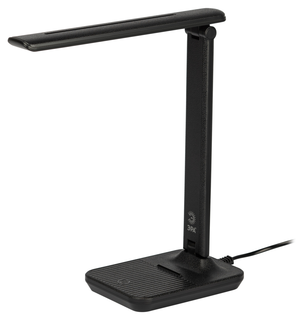 Настольный светильник ЭРА NLED-500-10W-BK со светодиодами (LED) в качестве источников света в дизайне "под кожу". Удобная складная модель с сенсорным управлением, возможностью выбора цветовой температуры и плавным диммером для регулировки яркости.