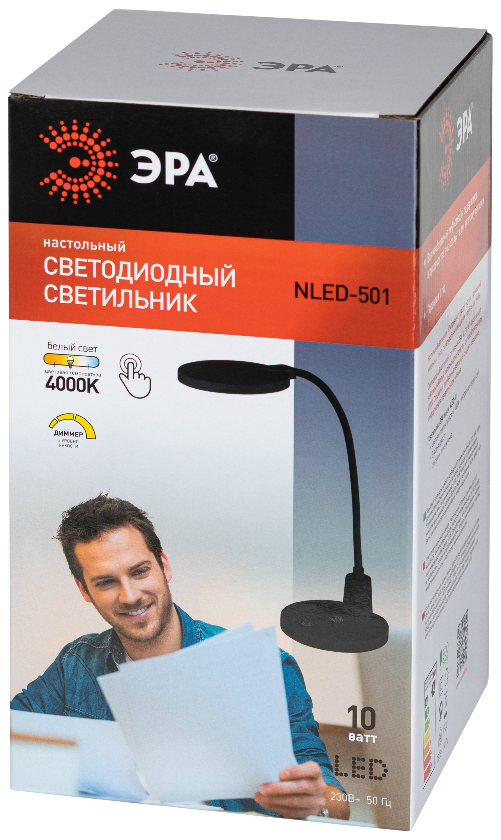 Настольный светильник ЭРА NLED-501-10W-BK со светодиодами (LED) в качестве источников света. Оснащен сенсорным управлением и плавным диммером для регулировки яркости. Форма плафона в виде круга обеспечивает оптимальное рассеивание света и очень удобна при мелкой ручной работе. Высота плафона регулируется гибкой стойкой, направление света регулируется поворотом плафона в любом направлении. Нейтральный белый свет - цветовая температура 4000К.