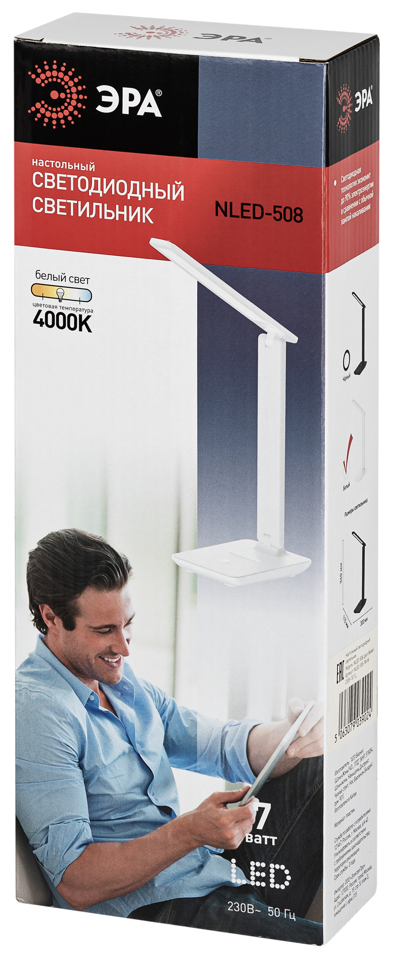 Настольный светильник ЭРА NLED-508-7W-W со светодиодами (LED) в качестве источников света в дизайне "под кожу" ,с выключателем на основании. Направление света регулируется поворотом плафона относительно стойки для максимального комфорта. Складная конструкция для оптимального хранения.