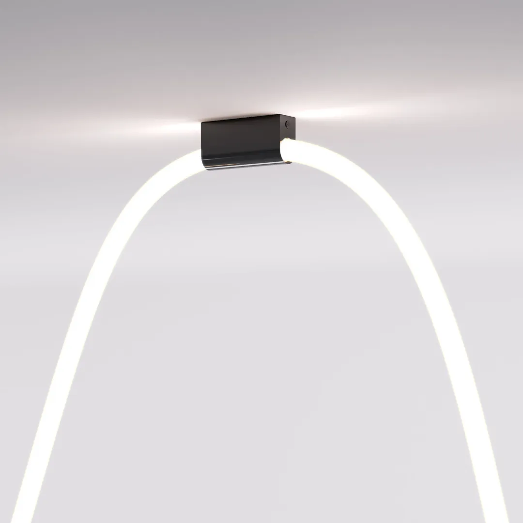 Накладные крепления для круглого гибкого неона Full light черный надежно соединяет конструкцию с поверхностью. Крепежный элемент устанавливается под ввод питания и декоративную часть. При монтаже с натяжным потолком рекомендуется заранее проложить провода и сделать площадки в местах установки креплений.
