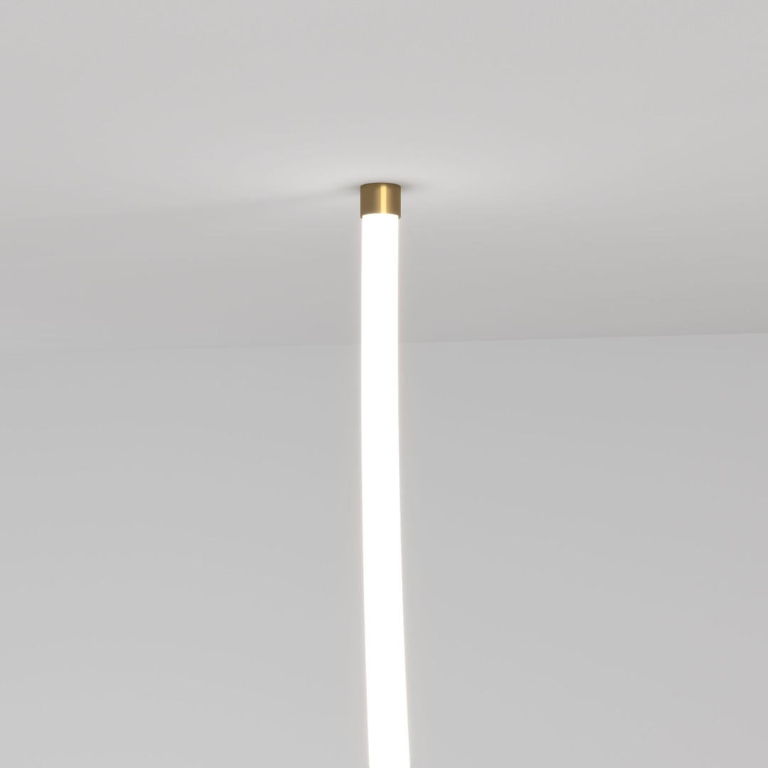 Потолочное крепление в цвете латунь для круглого гибкого неона Full light надежно соединяет конструкцию с поверхностью. Крепежный элемент устанавливается под ввод питания и декоративную часть. При монтаже с натяжным потолком рекомендуется заранее проложить провода и сделать площадки в местах установки креплений.