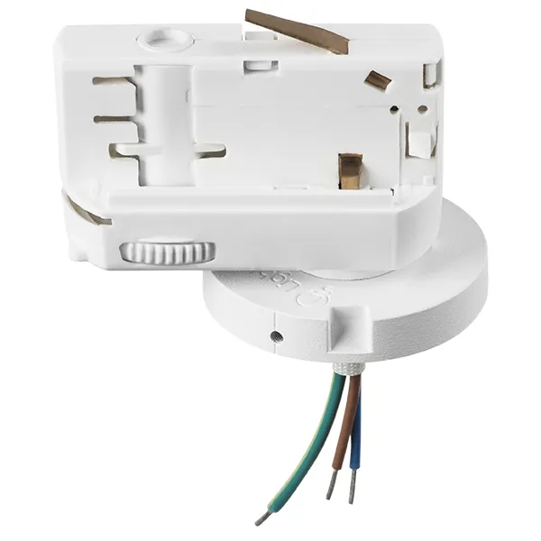 Трековое крепление с 3-фазным адаптером,  L65 W50 H50;  цвет: белый, материал: корпус - пластик/пластина - металл; внутри металлические провода и контакты
