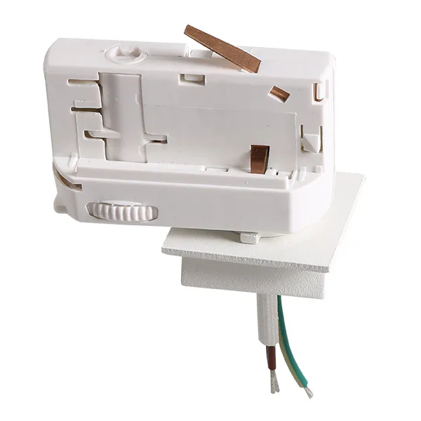 Трековое крепление с 3-фазным адаптером,  L43 W70 H56; цвет: белый, материал: корпус - пластик/пластина - металл; внутри металлические провода и контакты