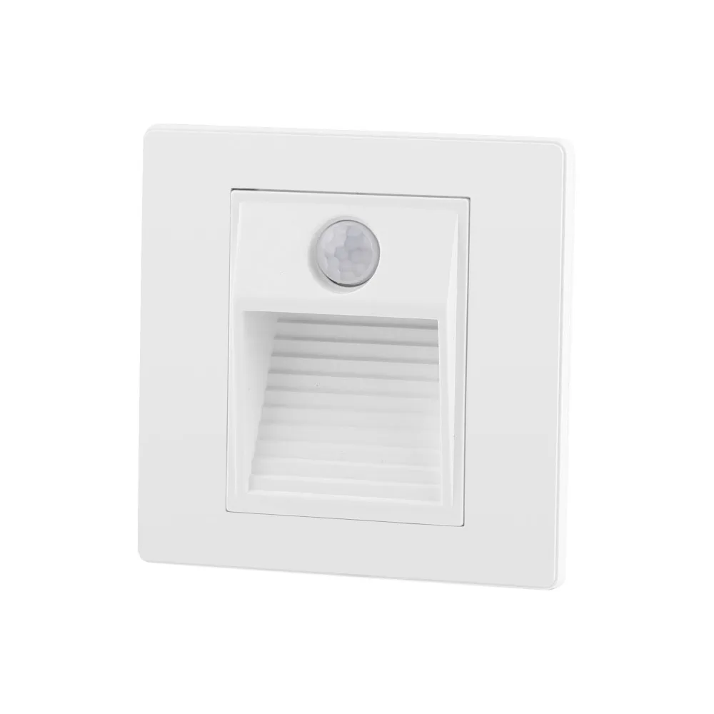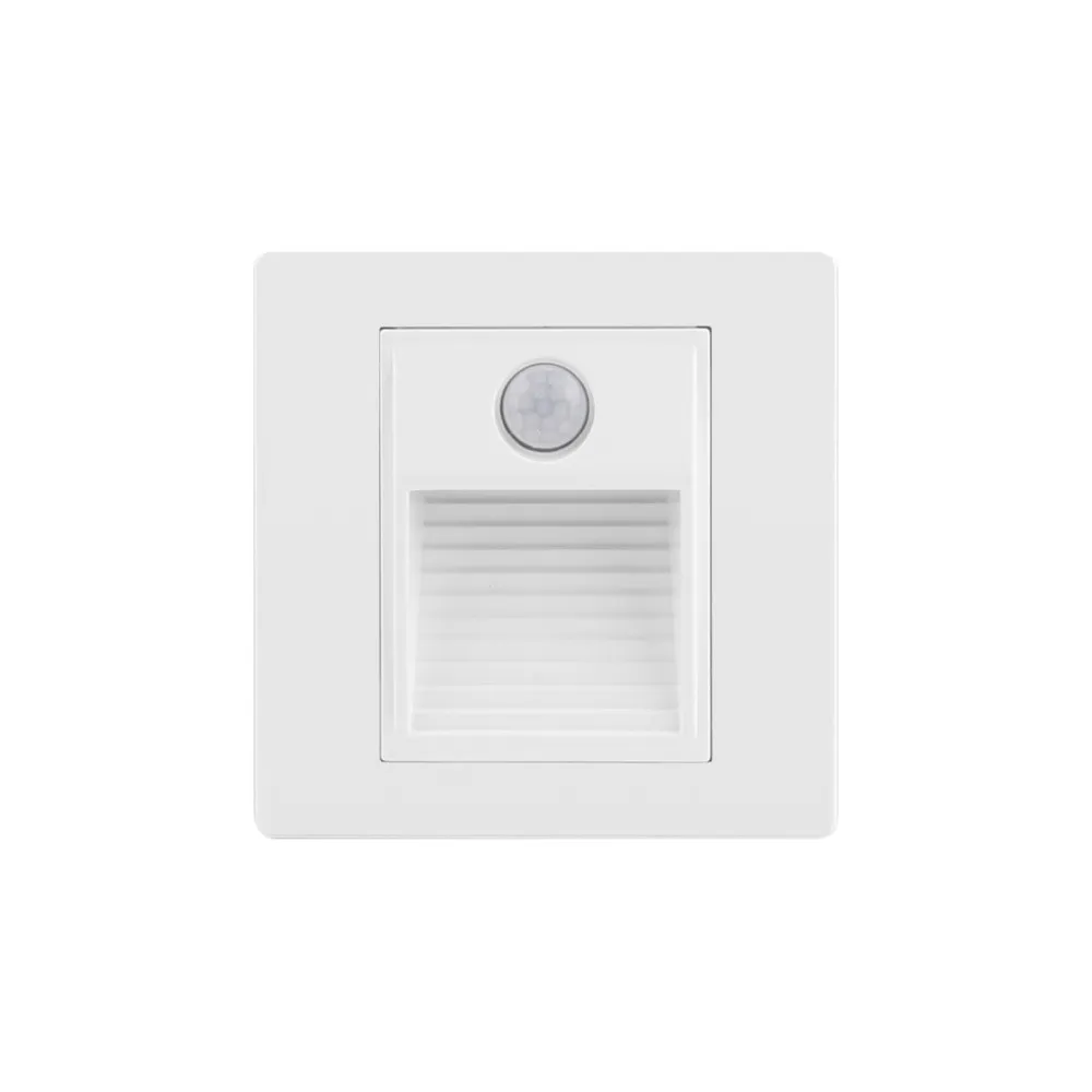 Подсветка ступеней лестницы Denkirs DK1020-WH – это стильное и функциональное решение для освещения вашего дома. Устройство выполнено в компактном белом корпусе из прочного пластика, что придает ему современный и минималистичный вид. Подсветка встроена в стену, создавая мягкий свет, который безопасно освещает ступени.\nСветильник оснащен светодиодом с цветовой температурой 3000K, обеспечивая теплое и комфортное освещение. Встроенный датчик движения автоматически включает свет при движении, что значительно экономит энергию. Степень защиты IP20 делает его идеальным для внутренних помещений.\nРекомендуется использовать эту подсветку в интерьерах современных стилей, таких как минимализм и хай-тек. Она идеально подойдет для лестниц, коридоров и других проходных зон, добавляя стиль и безопасность вашему пространству. Срок гарантии 3 года.