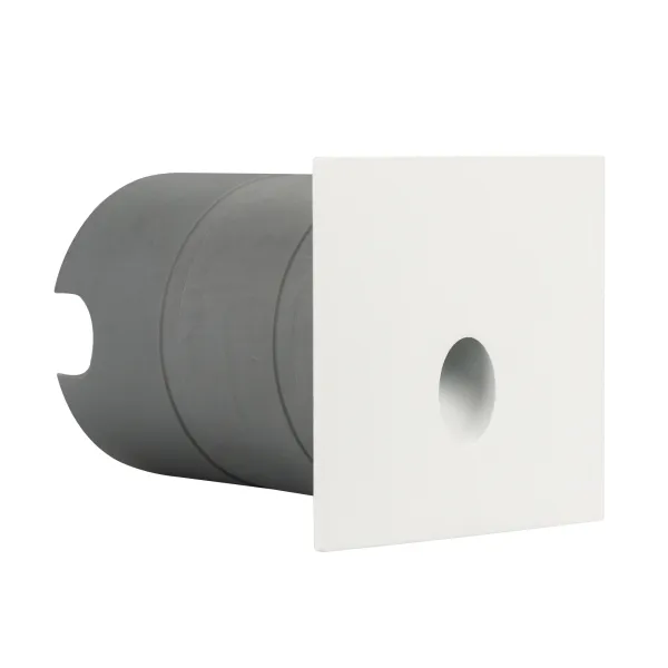 Светодиодный встраиваемый квадратный светильник для стен, лестниц, 3Вт. Цвет ТЕПЛЫЙ 3000К, световой поток 120лм, угол 30°, CRI>80. Влагозащищенный корпус IP65, белый алюминий. Питание AC230V, мощность 3Вт. Размеры LxWxH 70x70x97мм (закладная часть Ø62x95мм).