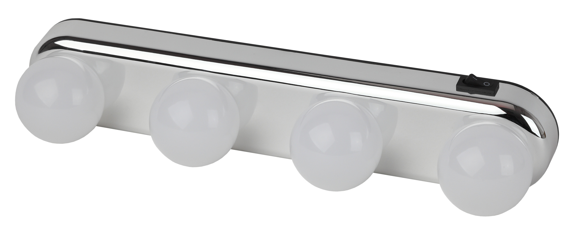 Автономная универсальная подсветка легко крепится на любой гладкой поверхности с помощью присосок или крепежей. Работает от 4-х батареек АА. Кнопка включения находится на корпусе. Подсветка подходит для макияжных зон и мебели. Цветовая температура 4000 К - нейтральный белый свет.
