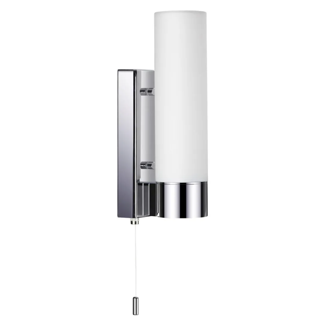 Настенный светильник 2660/1W линии Tingi создан специально для ванной комнаты с защитой IP44. Состоит из закрытого матового плафона и металлического основания цвета хром. Имеется выключатель. Цоколь E27. Мощность 1*60W. Нет ламп в комплекте.