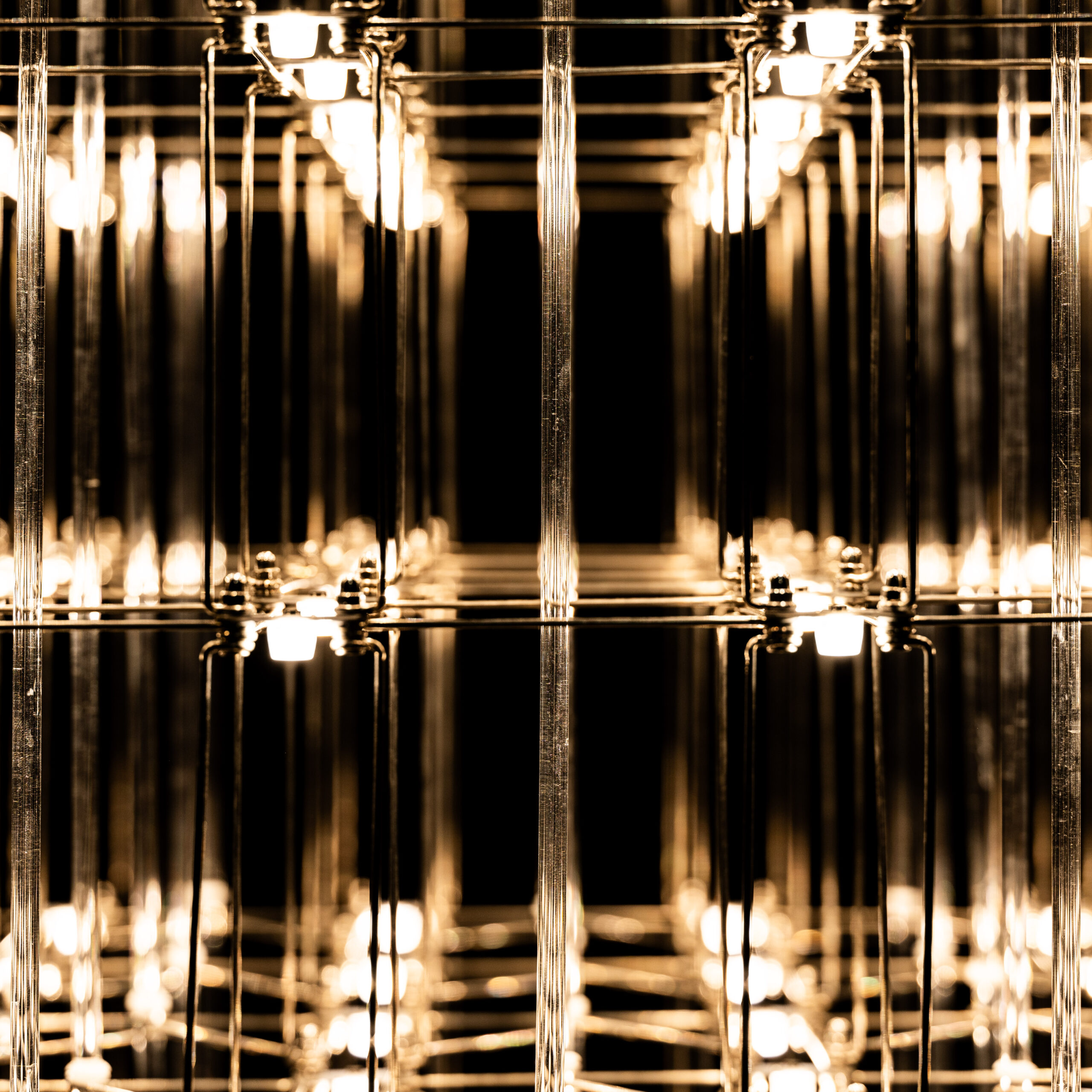 Дизайнерская люстра Cosmic Glass – одновременно изысканная и простая. Облако из светодиодов, создающее парящий в воздухе куб, смотрится стильно и эффектно. Выглядит лаконично и вместе с тем оригинально. Подвесной светильник ручной работы состоит из множества тонких металлических прутков, на пересечениях которых располагаются светодиоды. Минималистичный дизайн люстры удачно гармонирует с оформлением гостиных, холлов, столовых и других помещений в современном стиле.