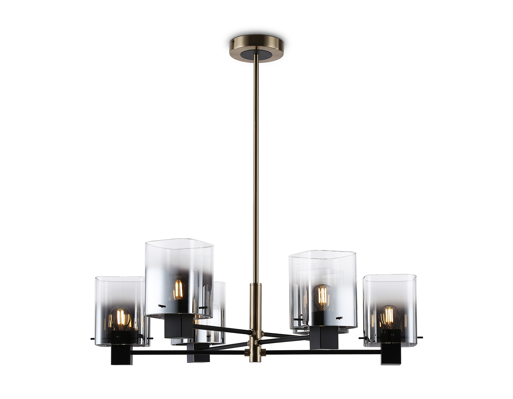Подвесная люстра из коллекции HIGH LIGHT. Модель LH57041 представлена в стиле неоклассика. Люстра выполнена из металлического каркаса в сочетании цветов темная латунь и черного и стеклянных плафонов дымчатого цвета. Для данной модели подойдут лампы с цоколем Е14. Люстра будет прекрасным дополнением в любом помещении.