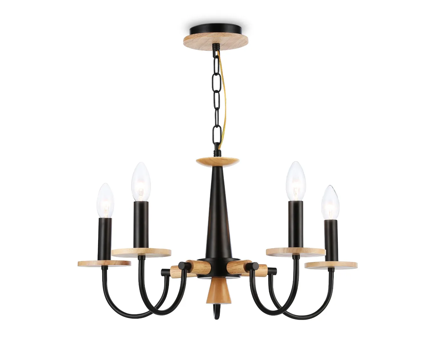 Подвесной светильник из коллекции TRADITIONAL. Модель TR9593 представлена в современном стиле неоклассика. Светильник выполнен из черного металлического каркаса и декора из натурального дерева.. Для данной модели подойдут лампы с цоколем Е14.