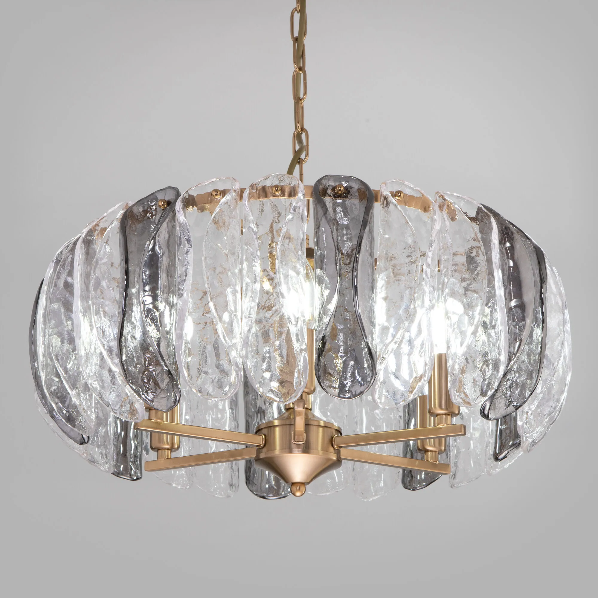 Роскошная коллекция Callas – это воплощение природных мотивов. Уникальный дизайн создает уютную и неповторимую атмосферу в вашем доме. Композиция светильника кажется воздушной и легкой за счет плафонов из фактурного стекла в дымчатом и прозрачном цвете, по форме напоминающих утонченные лепестки цветка Каллы.