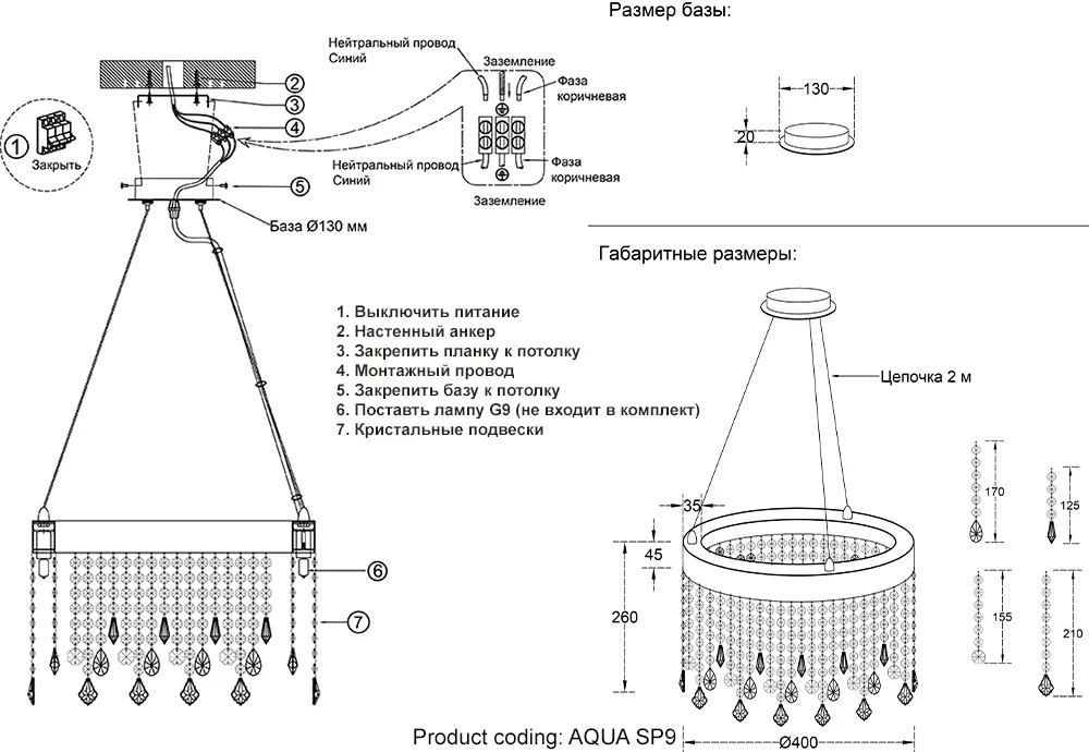 Подвесная люстра Crystal Lux AQUA SP9