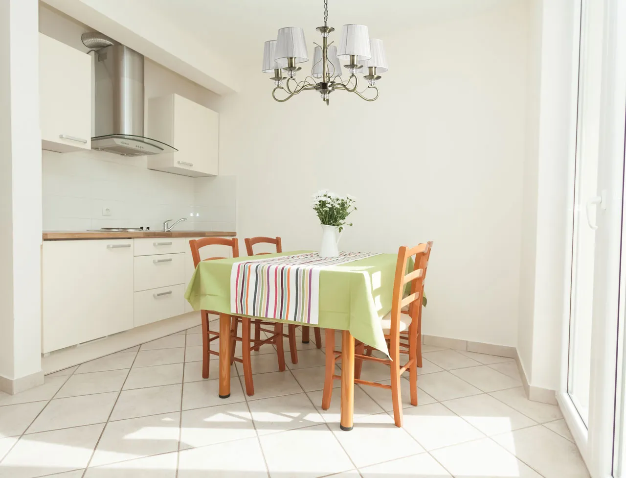 Основание светильника выполнено из металла и гальванизировано в цвет античной бронзы с последующим лакированием. Источники света закрыты текстильными абажурами белого цвета. Светильник декорирован элементами из прозрачного акрила.