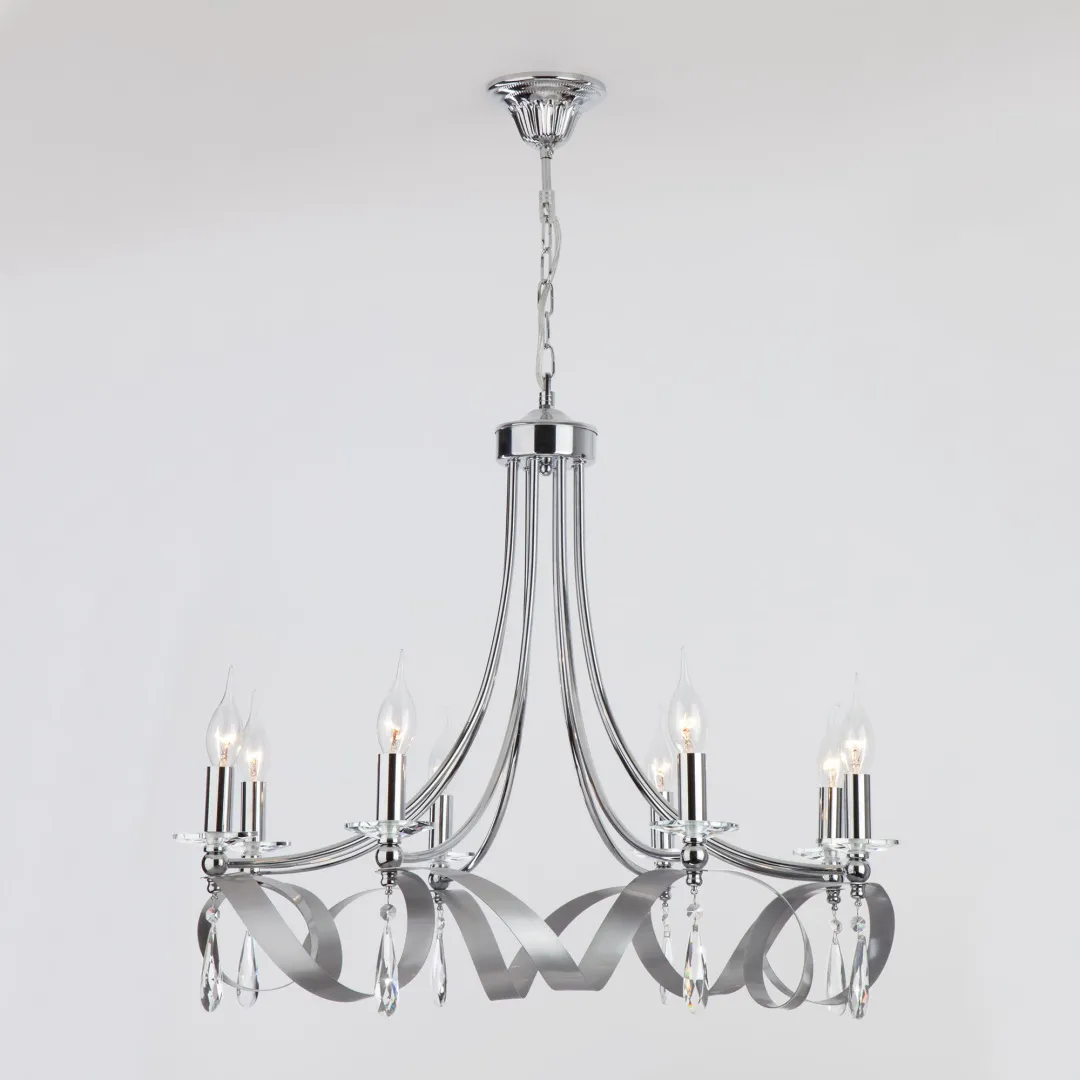 Подвесной светильник 60064/8 от интернет-магазина "Евросвет" станет настоящим украшением украшением гостиной или просторной спальни в классическом стиле. Оригинальное по форме основание люстры окрашено в популярный цвет хром. Восемь ламп исполнены в виде свечи на ветру с цоколем E14 и осветят помещение площадью 38 м.кв.