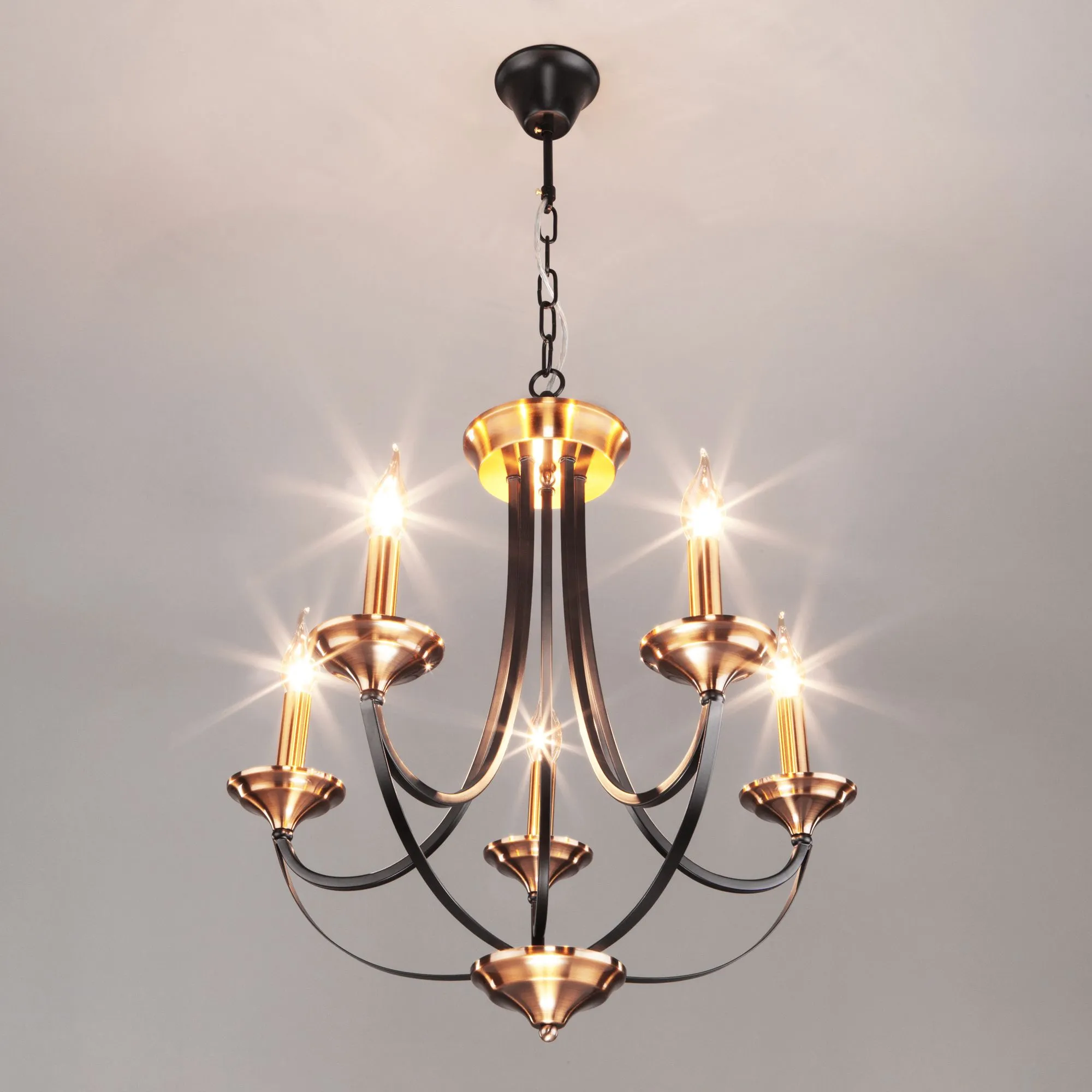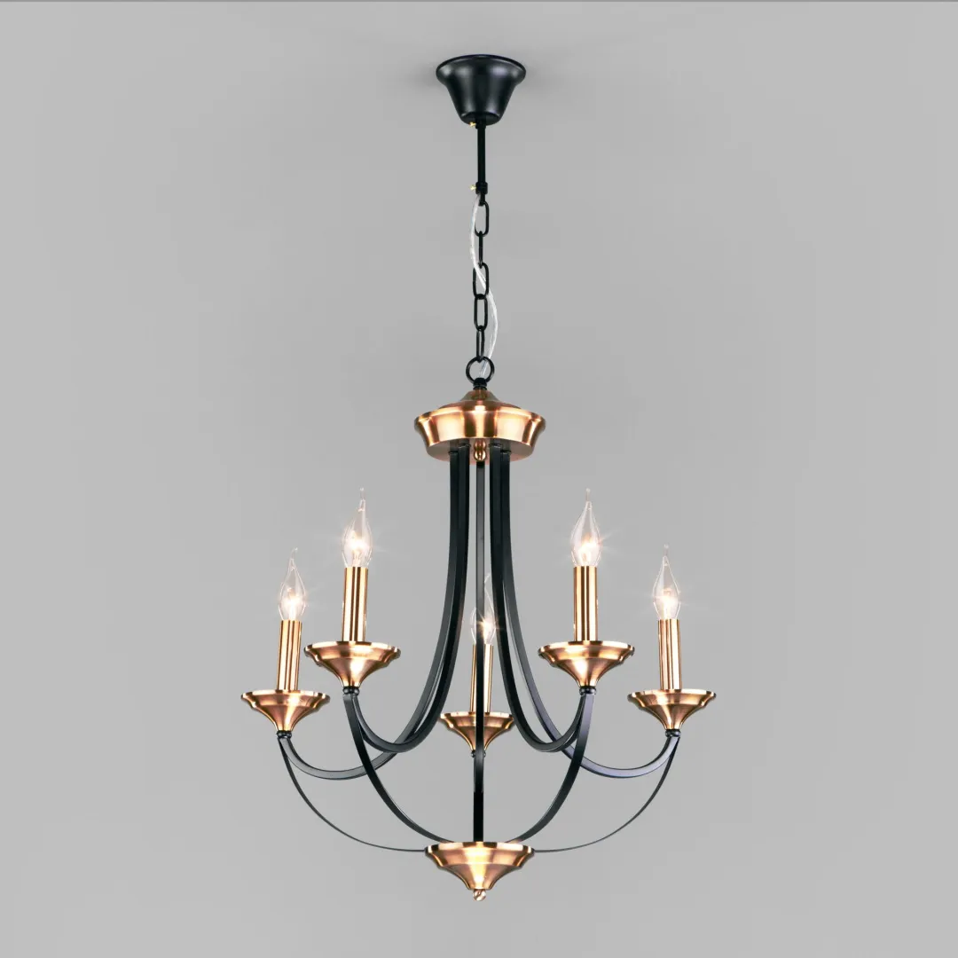 Пятирожковый светильник без плафонов эстетично смотрится с лампами свеча или свеча на ветру, подобный дизайн позволяет равномерно заполнять помещение светом. Накладной светильник легко устанавливается на потолке при помощи крюка.