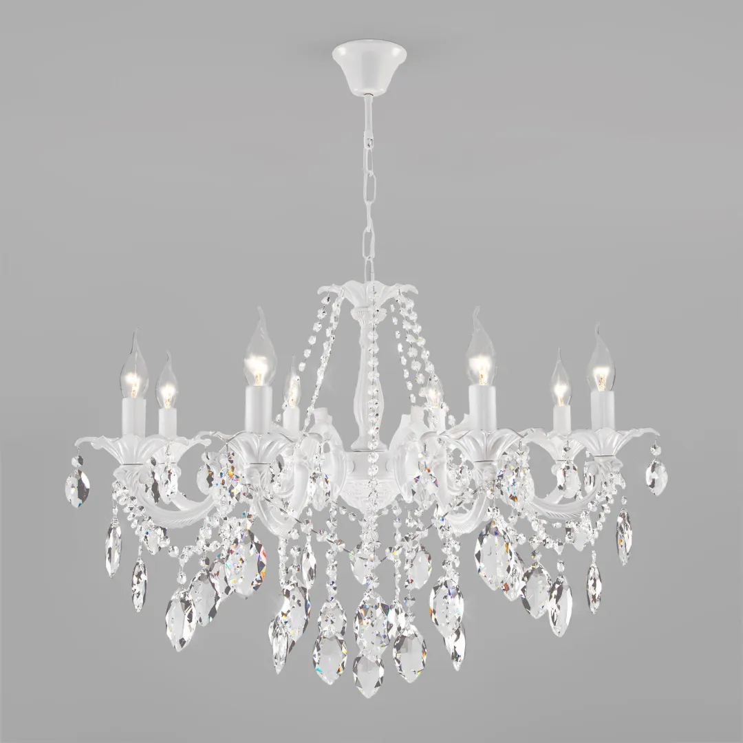 Классическая хрустальная люстра на 8 рожков в цвете белый/прозрачный хрусталь Strotskis преобразит потолочное пространство и создаст в вашем помещении комфортное полноценное освещение на площади 36 м кв. Изящные формы и классический стиль добавят вашей гостиной утонченного аристократизма.
