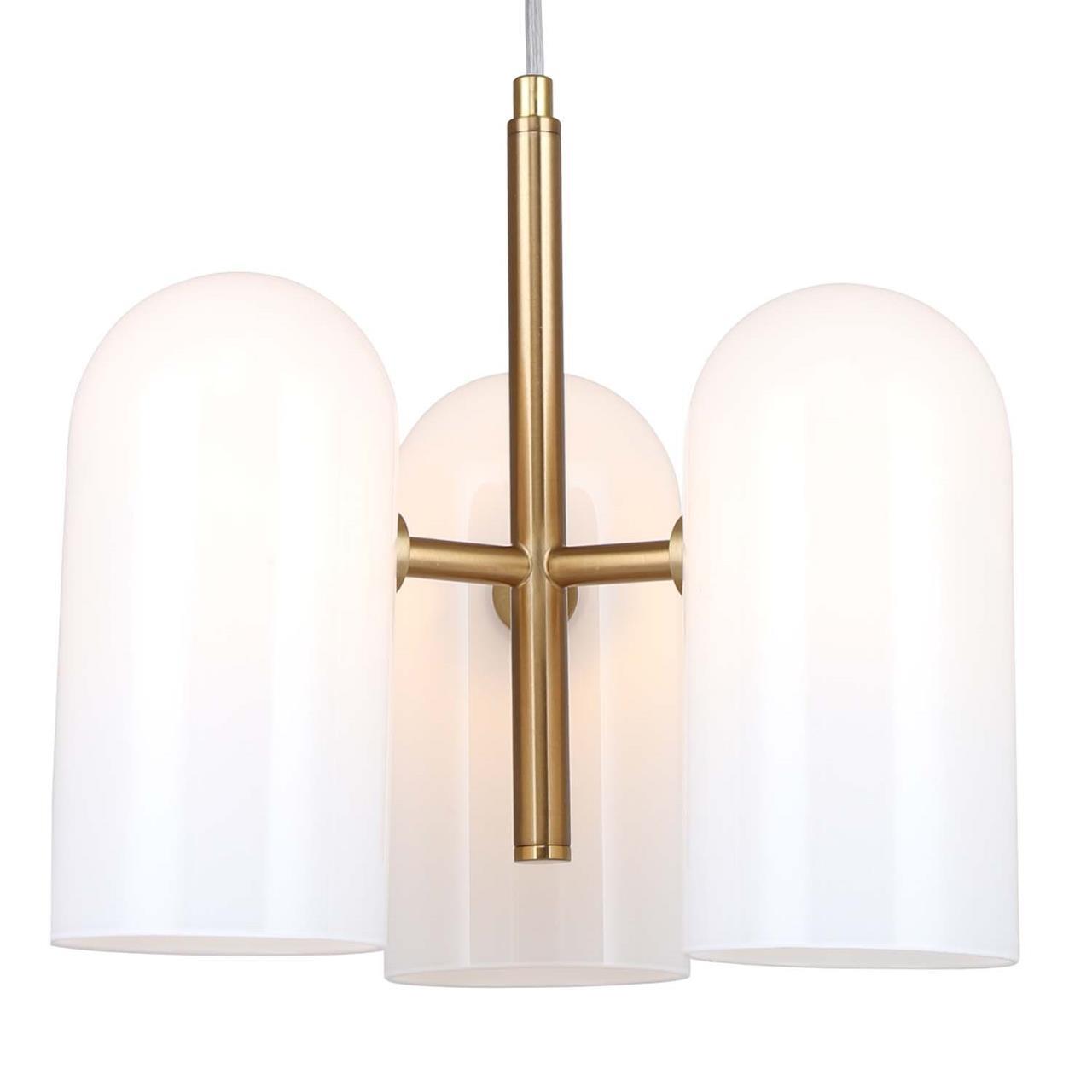 Каркас из металла цвета латунь, плафоны из белого стекла, регулируемая высота, сменная лампа G9.